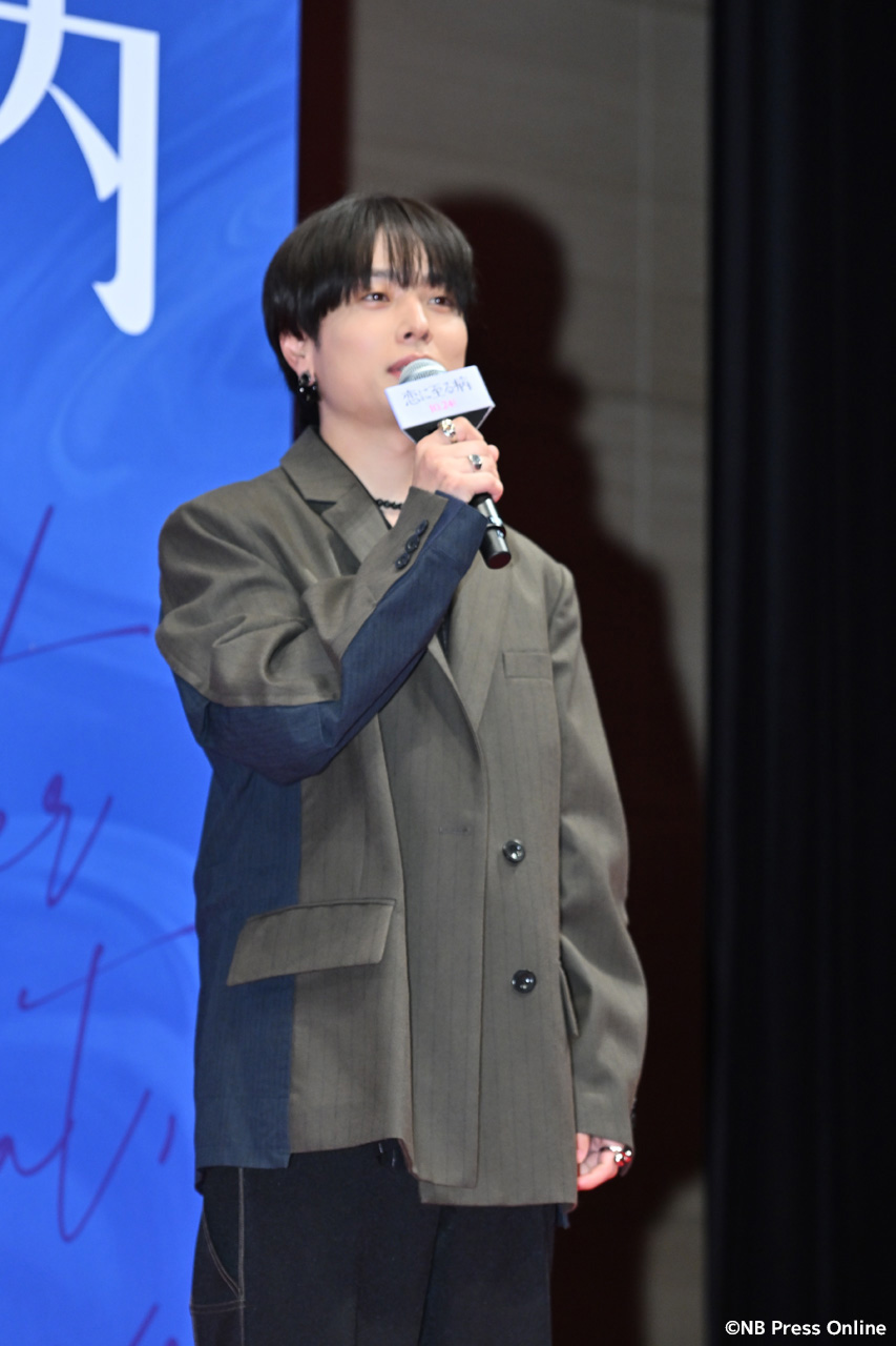 本日、このラブストーリーを見ていただけるのが本当に嬉しいです。僕も初めて作品を見るような気持ちでいますので、最後まで楽しんでいってください。