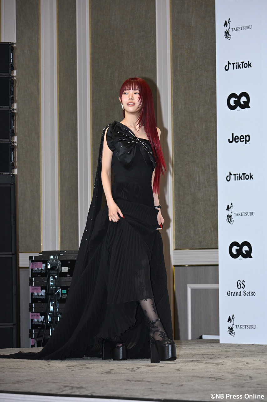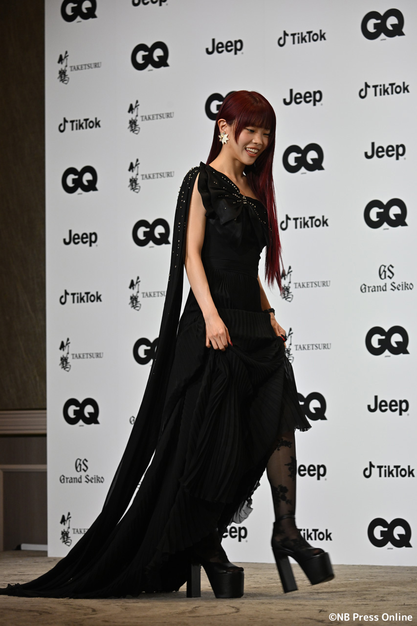 2025年12月2日、都内某所にて、その年に圧倒的な活躍を見せた人々を讃えるアワード「GQ MEN OF THE YEAR 2025/20th Anniversary」フォトコールが開催され、「ブレイクスルー・アーティスト賞」を受賞したアイナ・ジ・エンドが登壇。彼女は、BiSH解散後、ソロアーティストとして飛躍を遂げ、アニメ『ダンダダン』の主題歌「革命道中 – On The Way」が全世界で大ヒットしたことなどが評価された。