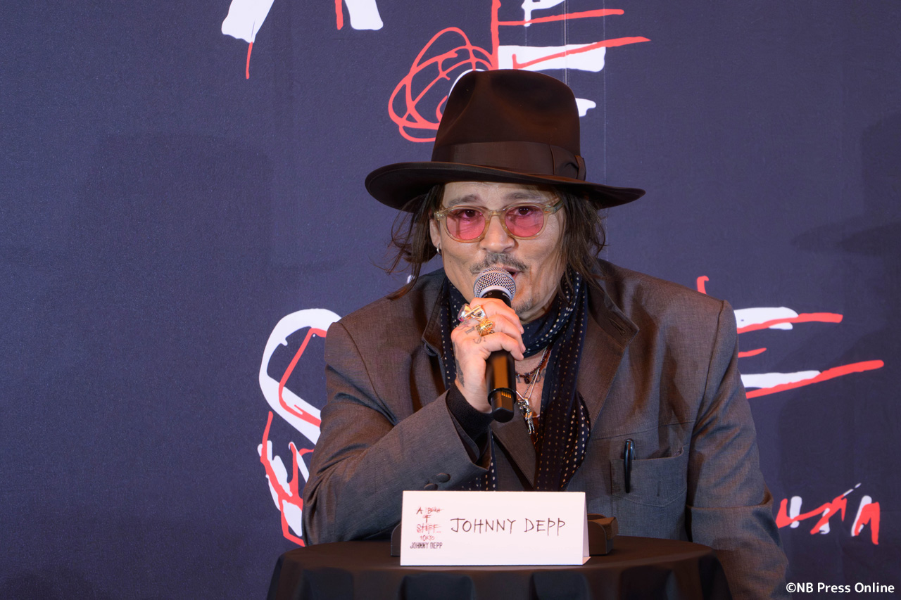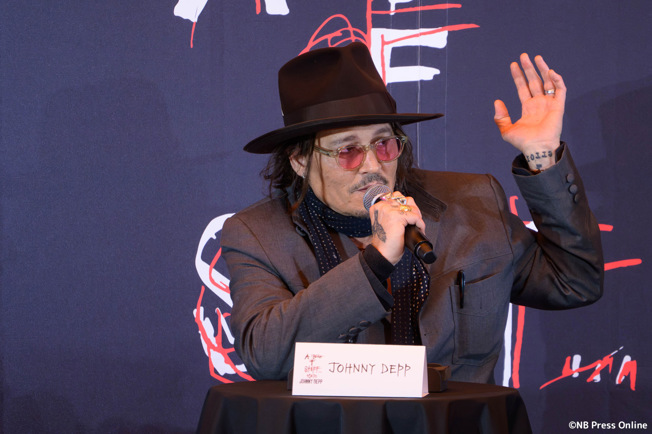 会見冒頭、MCより本プロジェクトの概要が紹介された。デップにとって絵画は、映画のキャリアよりも以前から続く、大切な表現手段だ。本展では、彼のスタジオや創作の世界、そして極めてプライベートな瞬間を再現する100点を超える作品や私物、没入型の空間が東京に届けられる。昨年ニューヨークで初めて開催され、高い評価を得ており、今回、東京が初めての国際的な展示の場となる。本展示会は、2025年11月28日から2026年5月6日まで開催される。
