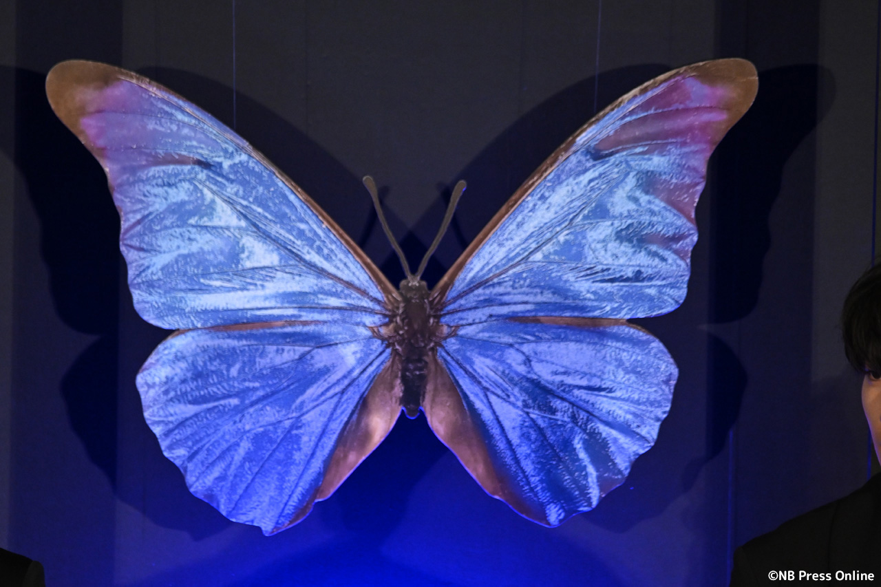 “世界で最も美しい蝶”と称される、レテノールモルフォをイメージした艶やかなブルーカーペットが敷き詰められた会場。