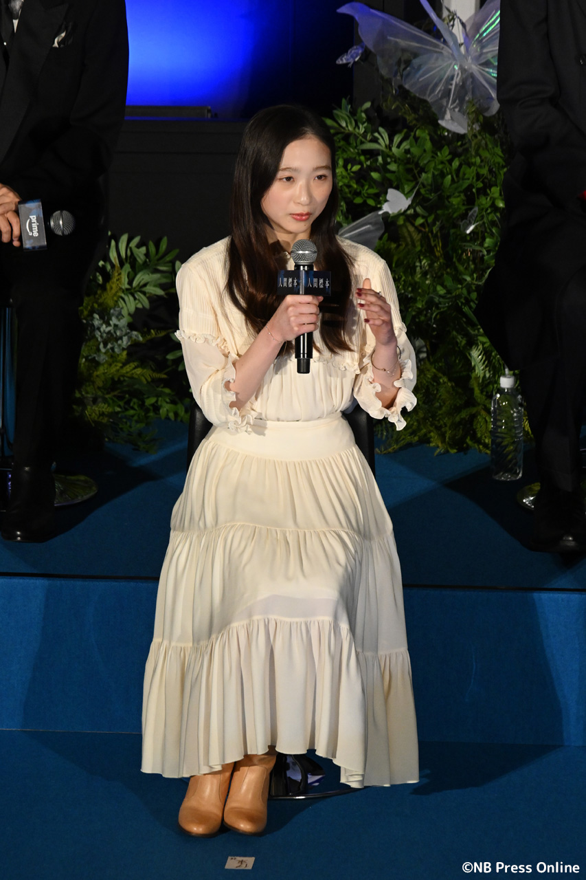 MCより、主演の西島秀俊の欠席が明かされると残念な表情を浮かべた観客らも、西島演じる主人公・榊史朗の息子・至役を務めた染五郎氏キャスト・スタッフ陣を代表し、「撮影を振り返ると、はるか遠い昔のように感じる時もあれば、昨日のことのように鮮烈に思い出す瞬間もあります。それだけ濃密な撮影期間でした。本当に素敵なスタッフ・キャストの皆さんと出会わせていただいて、そんな経験が一つの作品として形になって、世界中に届くことがとても嬉しいです」と、配信開始に向け意気込みを語ると、場内全体が大きな期待感に包まれた。