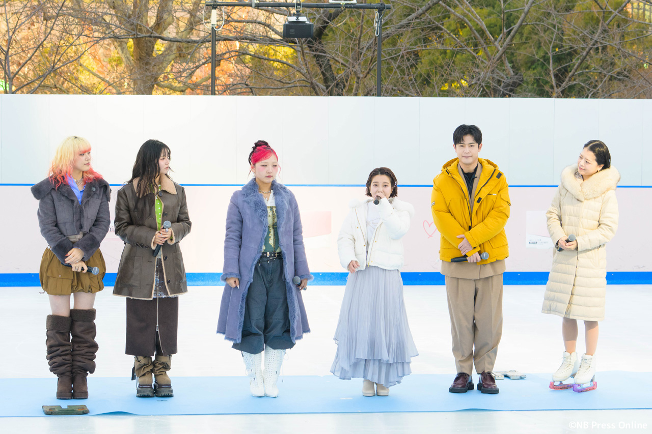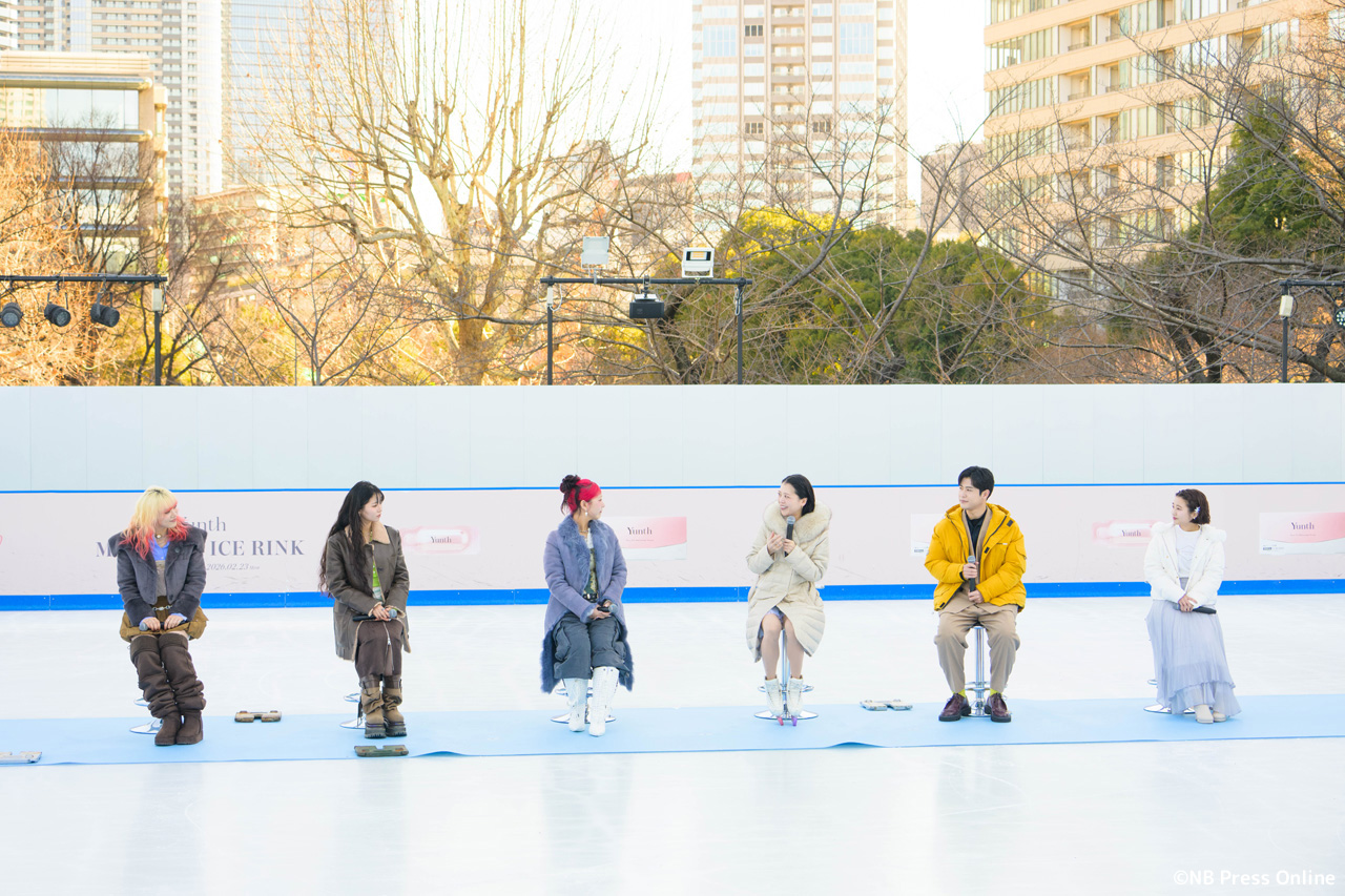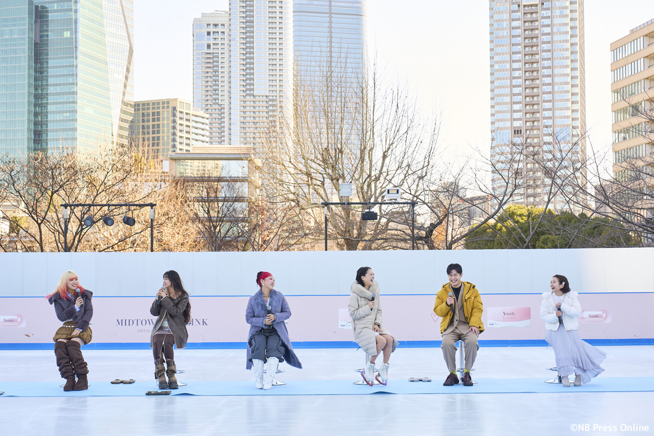 会場の「Yunth MIDTOWN ICE RINK」は都内最大級の屋外スケートリンクでのイベントにキャスト一同感激した様子。