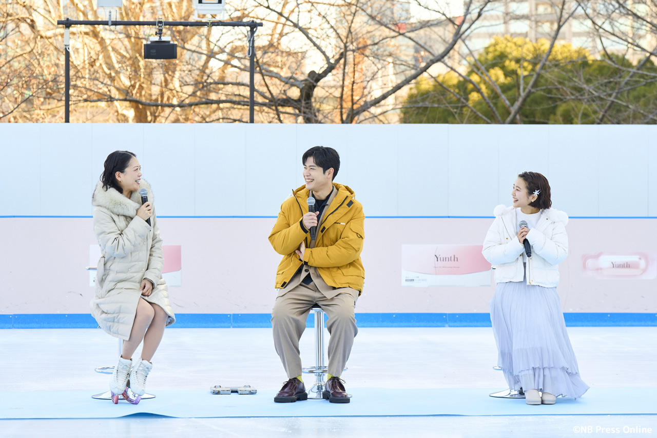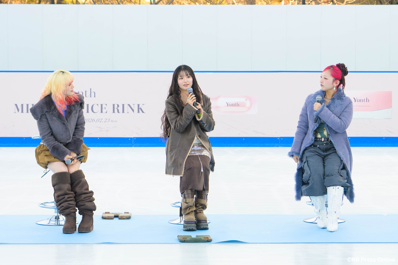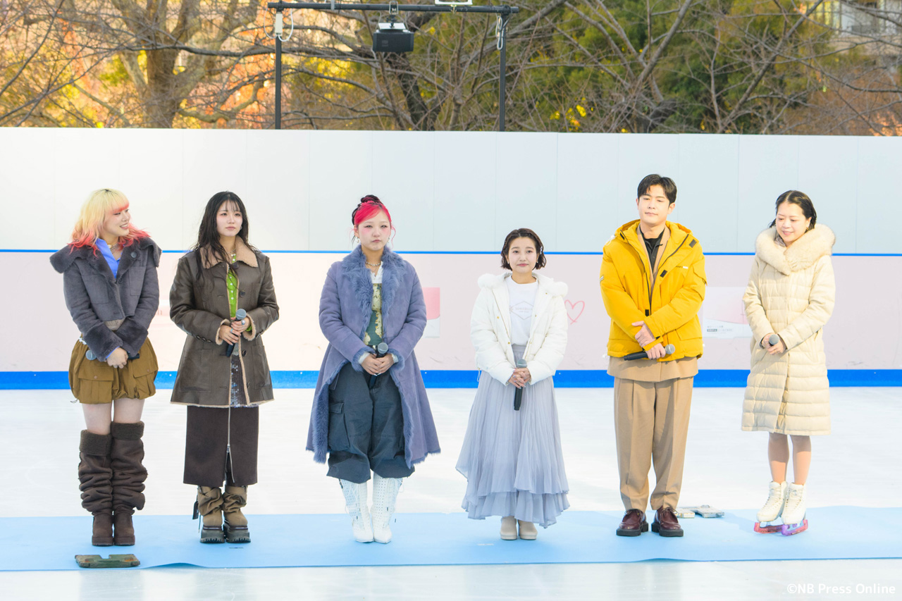 会場の「Yunth MIDTOWN ICE RINK」は都内最大級の屋外スケートリンクでのイベントにキャスト一同感激した様子。