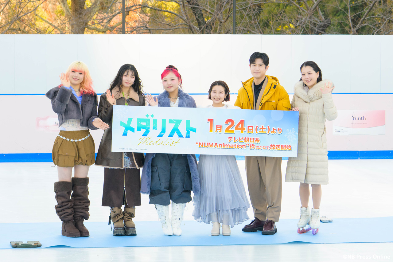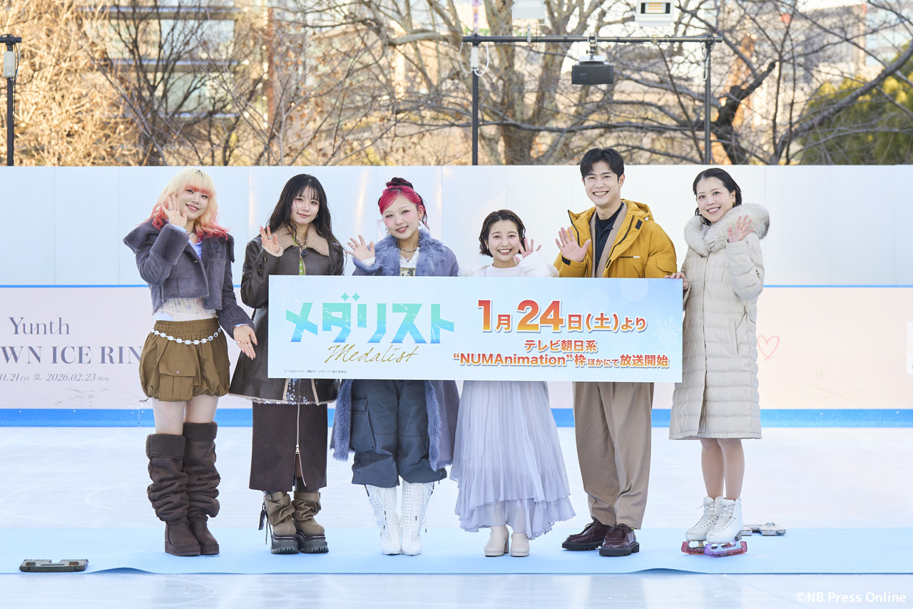 2026年1月10日、Yunth MIDTOWN ICE RINK(東京都港区)にて、TVアニメ『メダリスト』第2期アイススケートリンクイベントが行われ春瀬なつみ(結束いのり 役)、大塚剛央(明浦路司 役)、鈴木明子(フィギュアスケート振付)、そして第2期のOP主題歌を担当するHANA(CHIKA・MAHINA・KOHARU)が登壇。(動画&フォト)