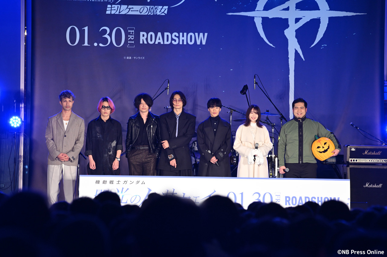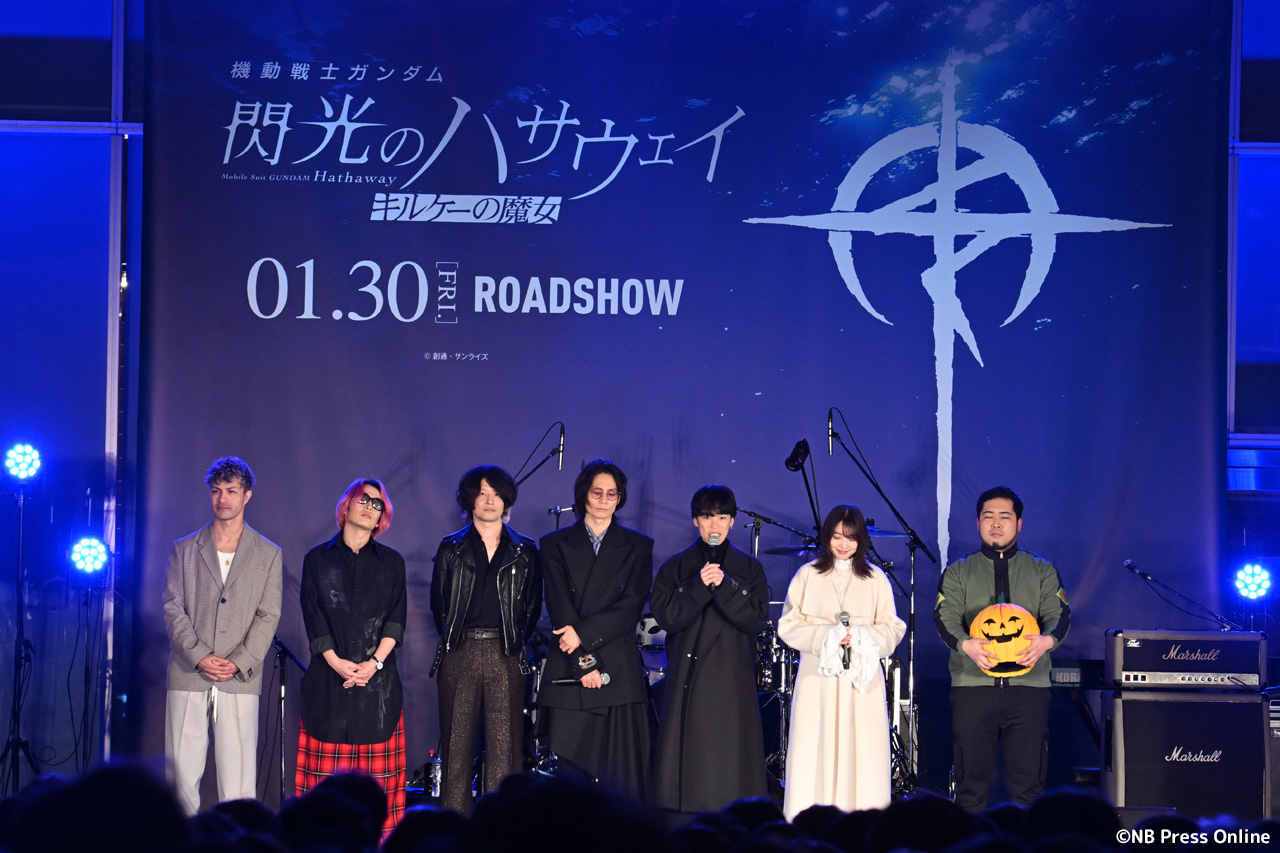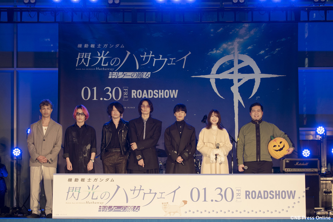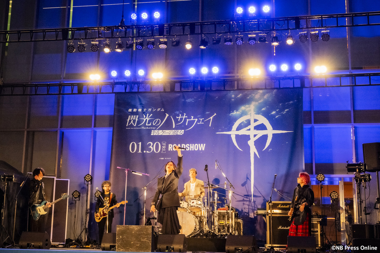 カウントダウンとともにメンバーが姿を現すと、会場のボルテージは一気に最高潮へ。「Girl A」「超える」を立て続けに披露し、ボーカル・川上洋平のハイトーンボイスが新宿の夜に響き渡る。観客はサイリウムを振り、メンバーの名前を叫ぶなど、興奮を全身で表現した。ラストはコール&レスポンスから、前作『機動戦士ガンダム 閃光のハサウェイ』の主題歌「閃光」をパフォーマンス。