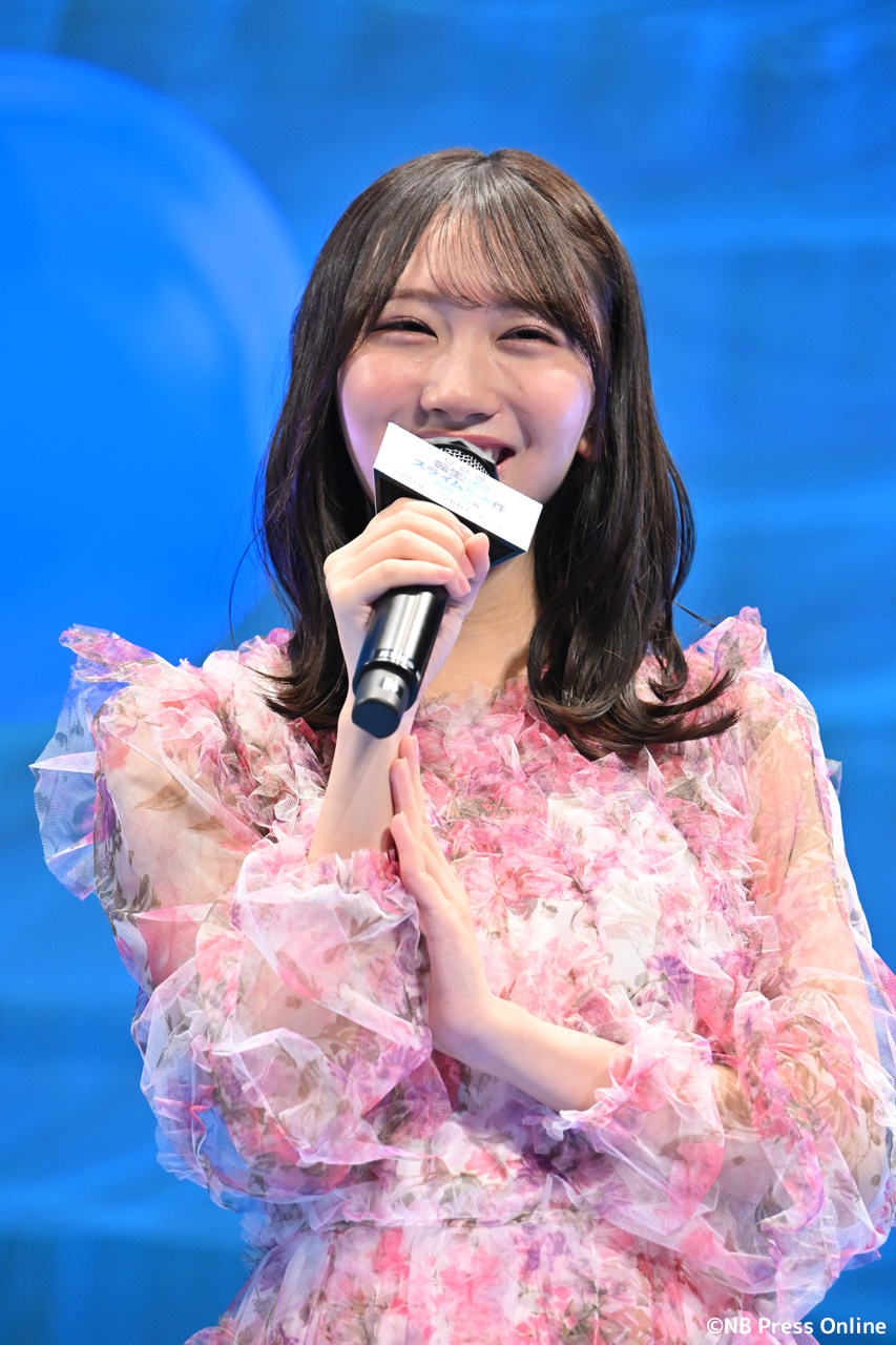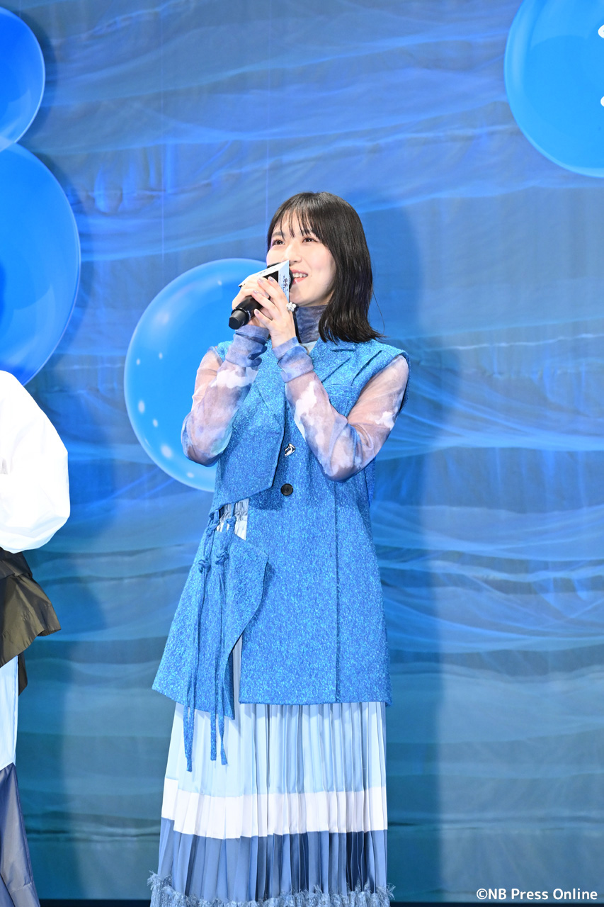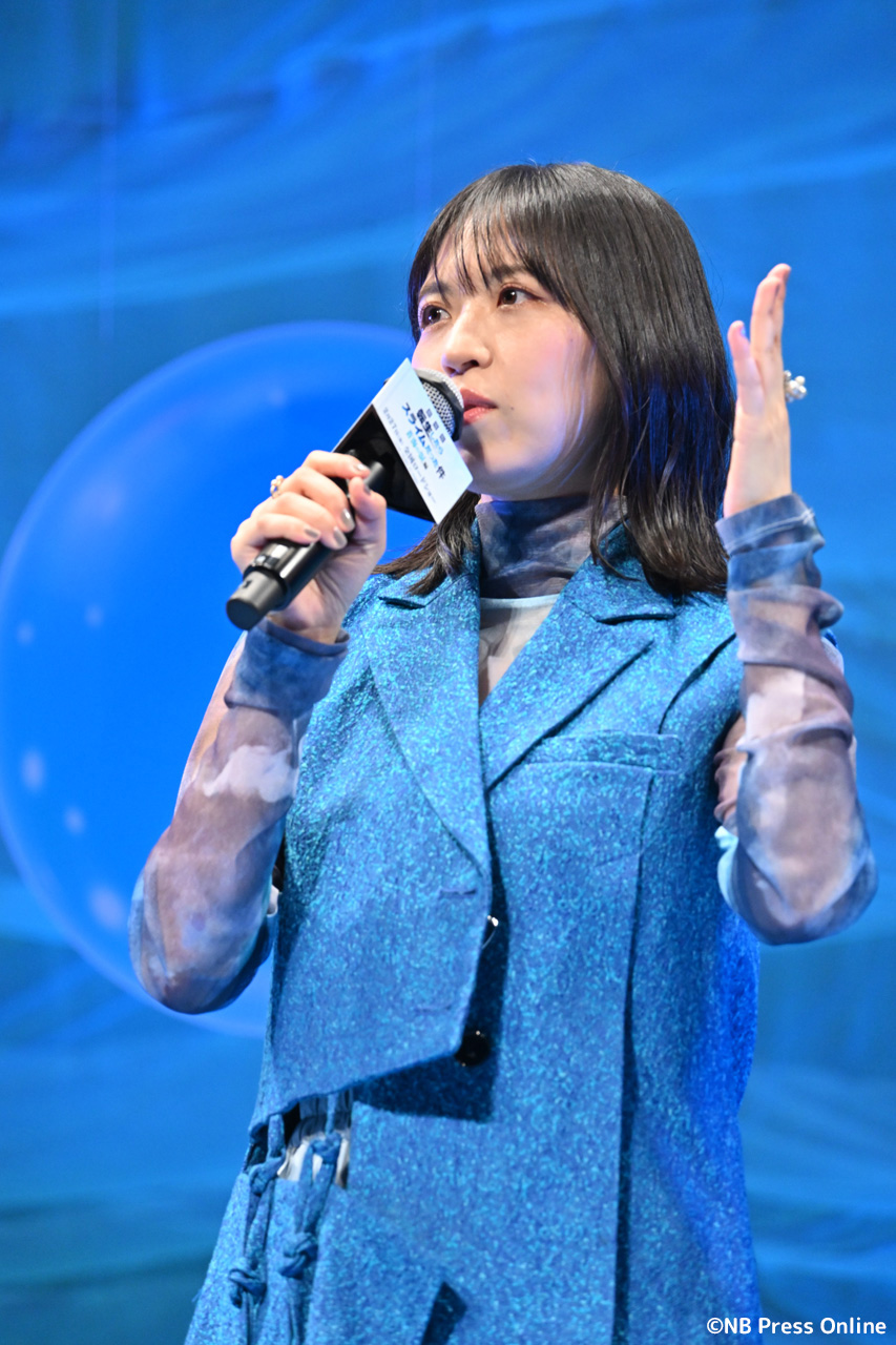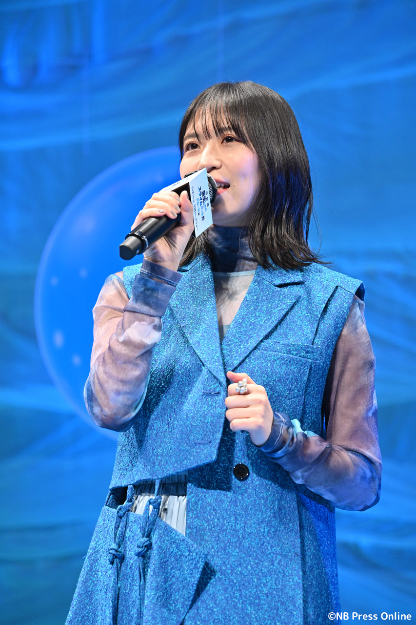 私は個人での演技のお仕事自体が初めてで、それが声優のお仕事ということで緊張や不安もありました。でも、先輩の小坂さんと一緒に出演できたことや、ファンやメンバーからお祝いの言葉をもらって心が温まりました。今日こうして皆様にお会いできて、幸せな気持ちでいっぱいです。