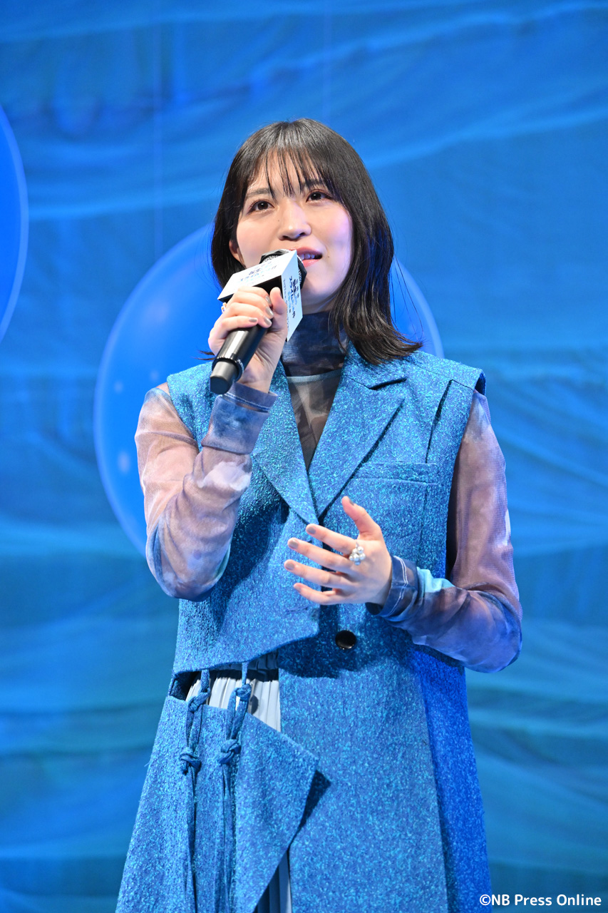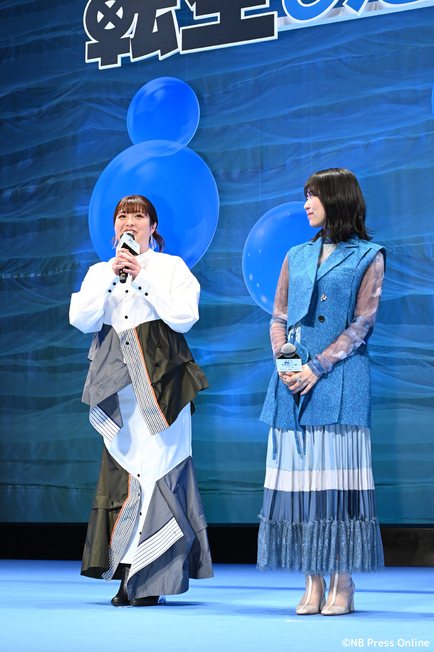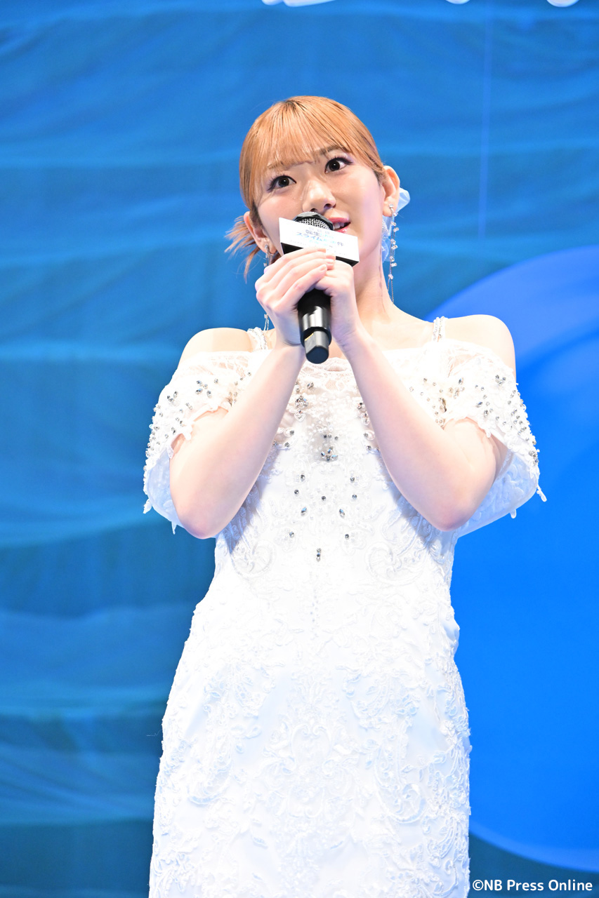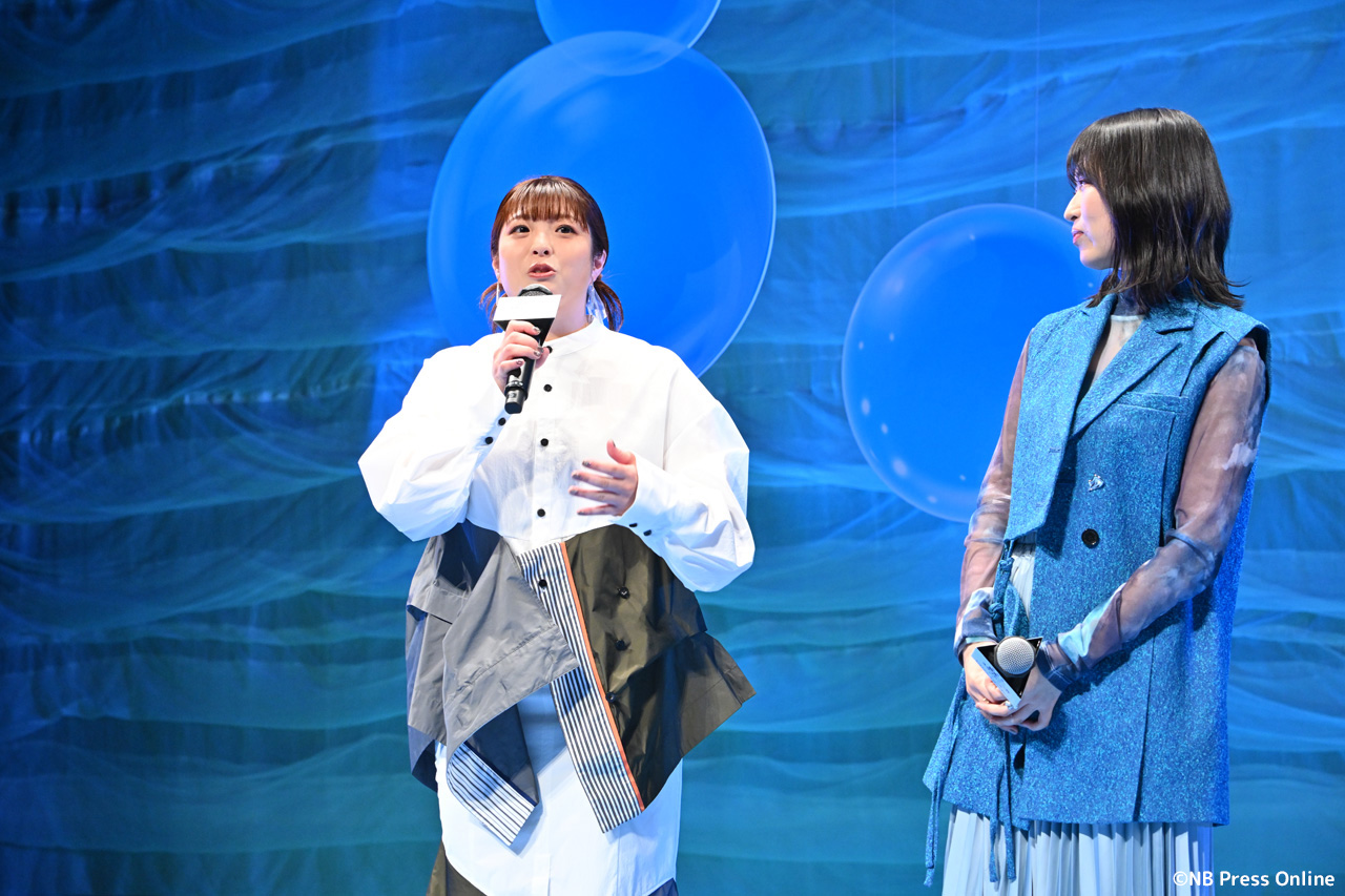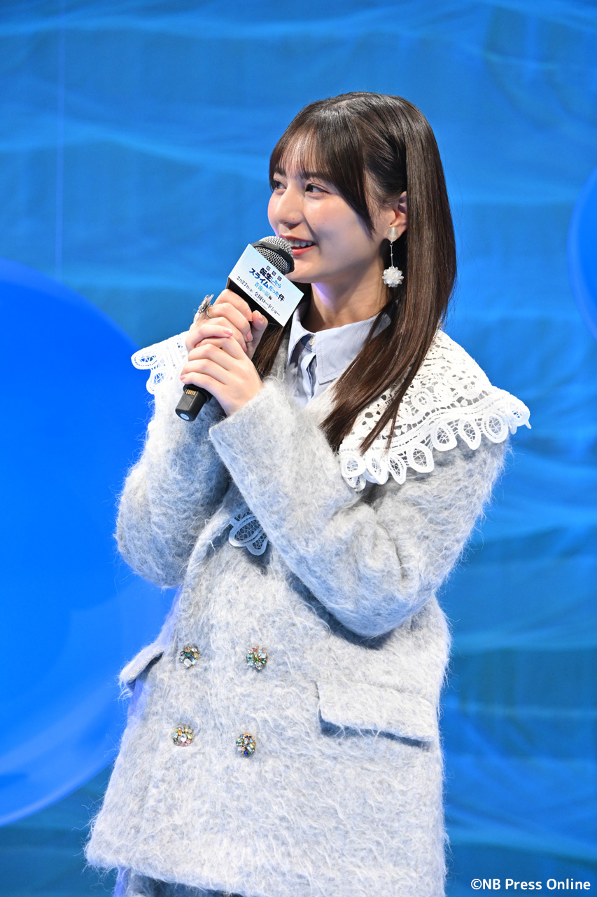 私は個人での演技のお仕事自体が初めてで、それが声優のお仕事ということで緊張や不安もありました。でも、先輩の小坂さんと一緒に出演できたことや、ファンやメンバーからお祝いの言葉をもらって心が温まりました。今日こうして皆様にお会いできて、幸せな気持ちでいっぱいです。