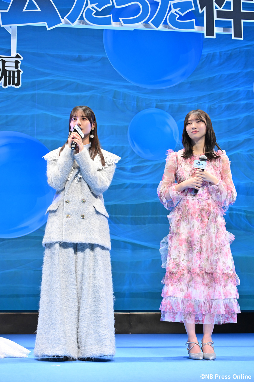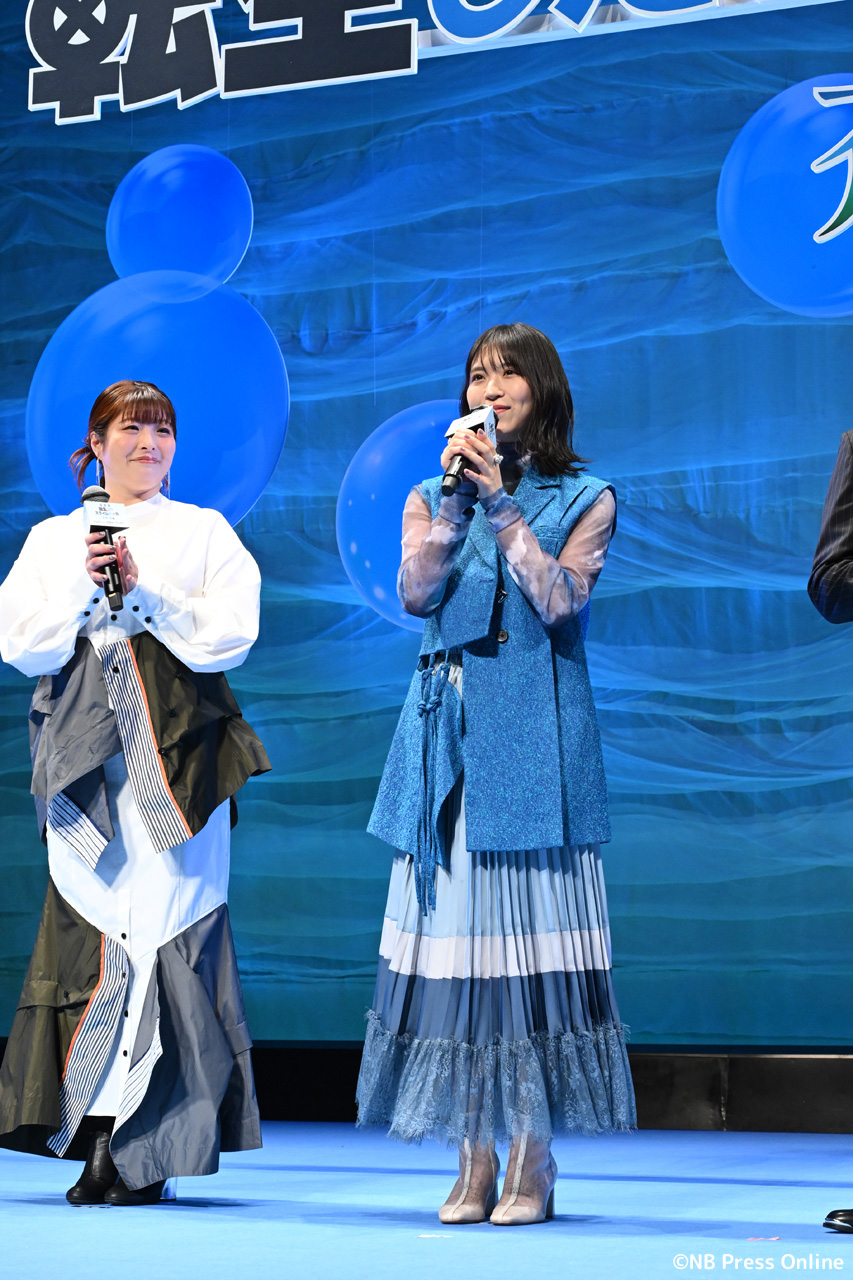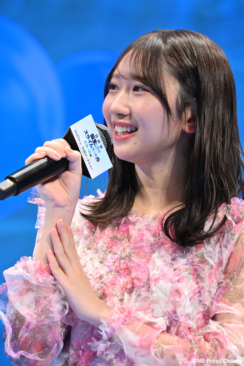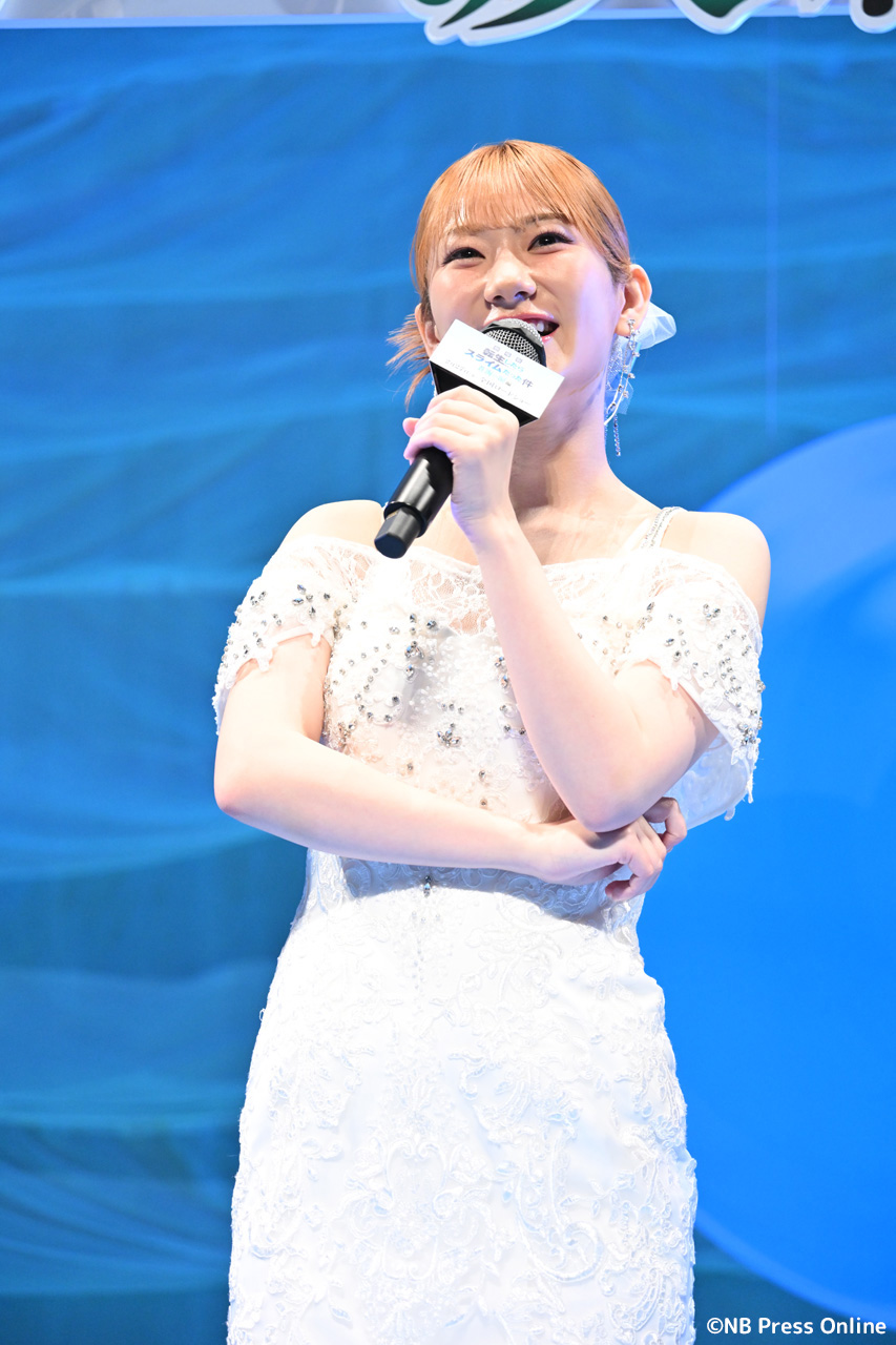 私は個人での演技のお仕事自体が初めてで、それが声優のお仕事ということで緊張や不安もありました。でも、先輩の小坂さんと一緒に出演できたことや、ファンやメンバーからお祝いの言葉をもらって心が温まりました。今日こうして皆様にお会いできて、幸せな気持ちでいっぱいです。