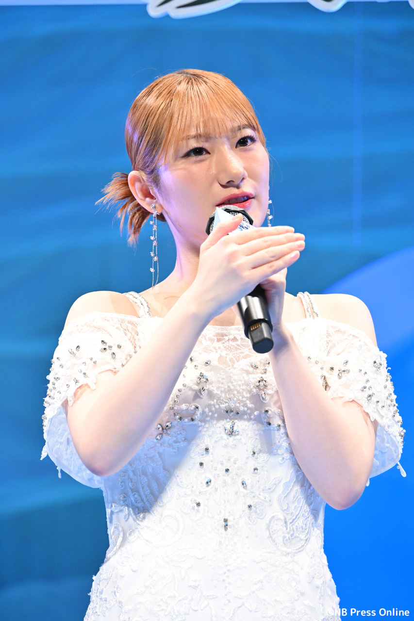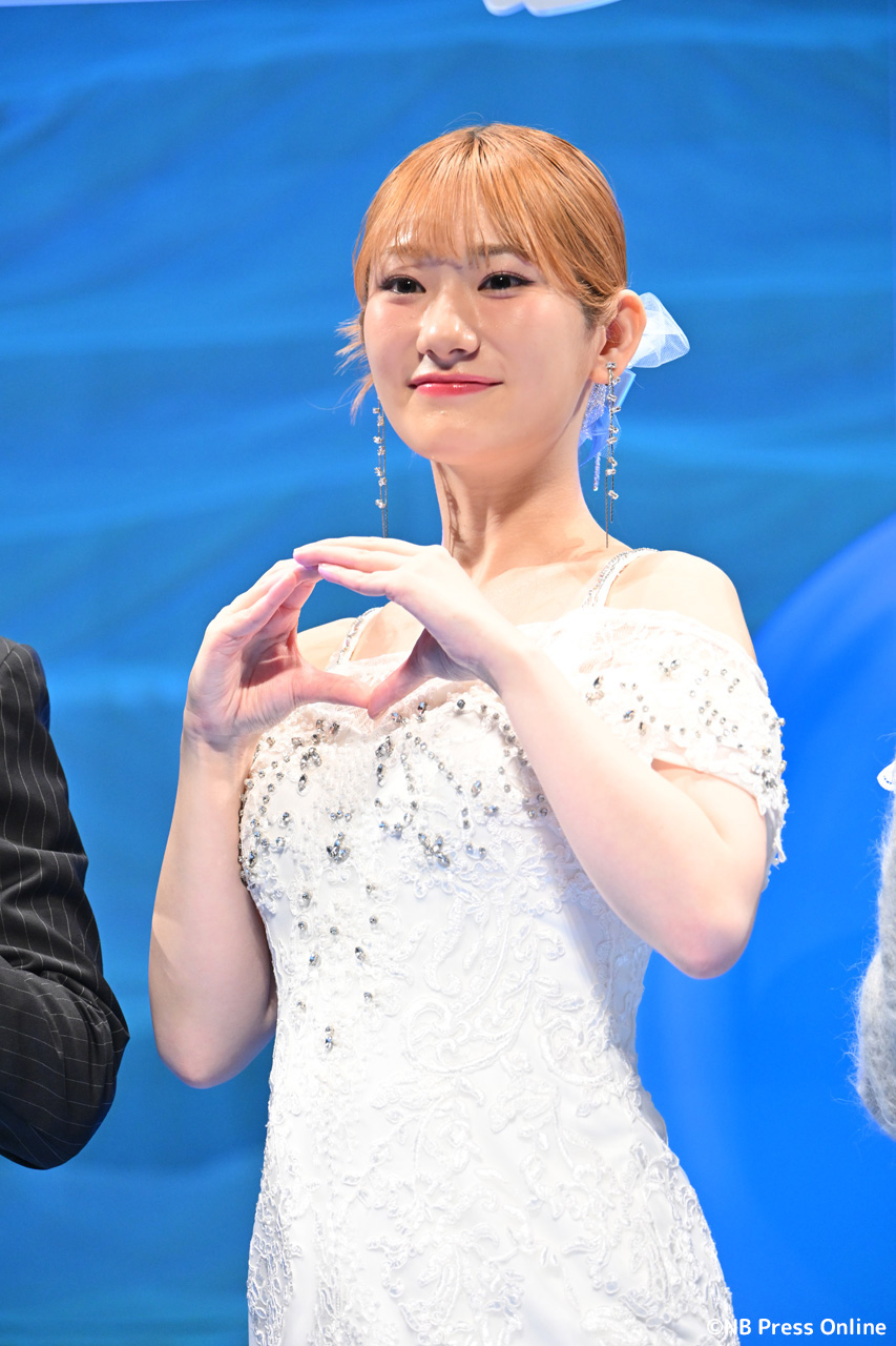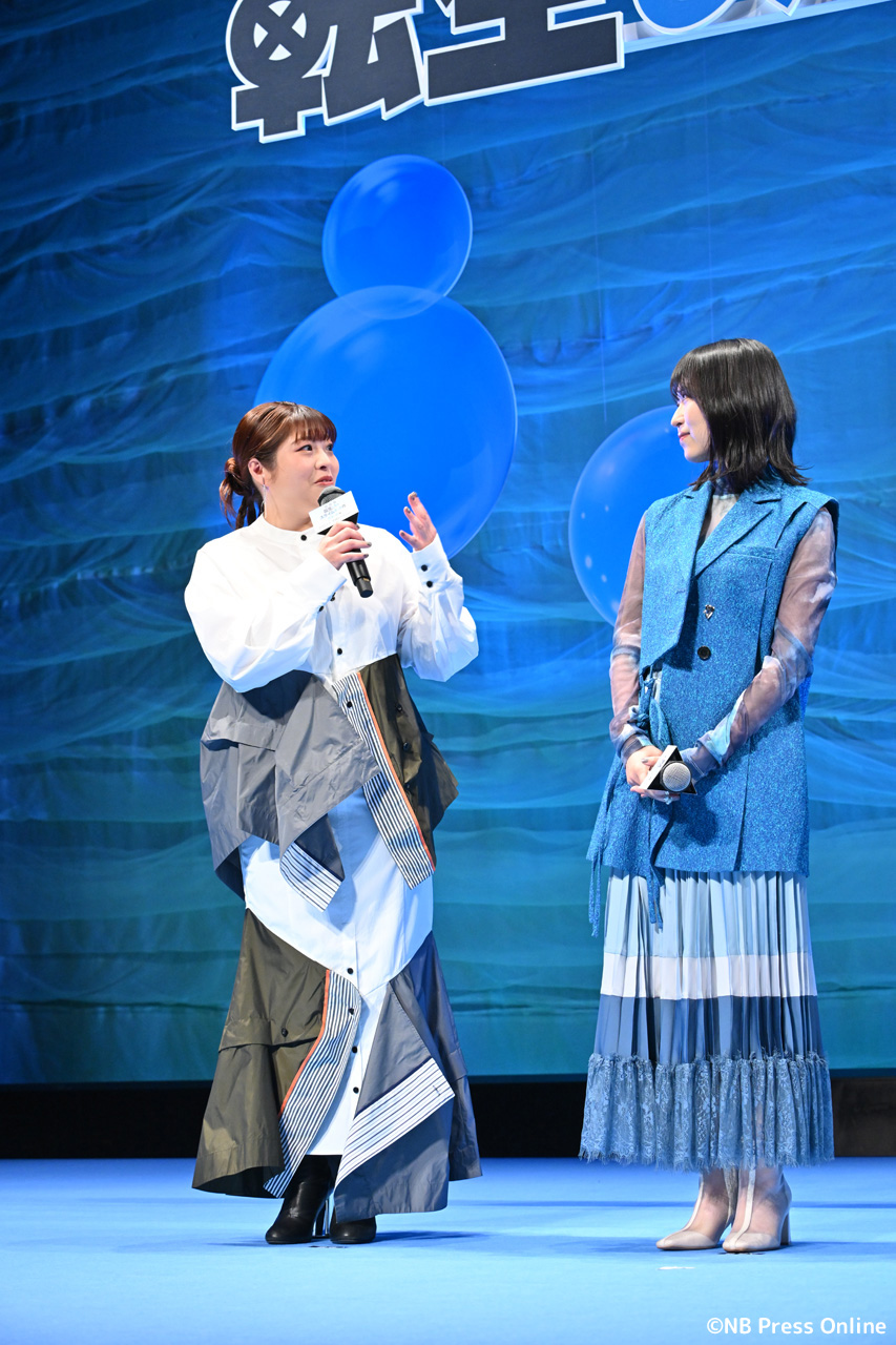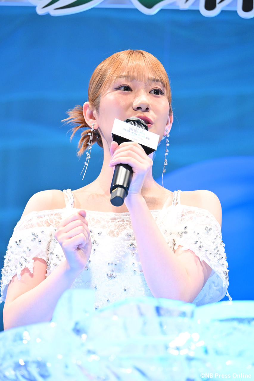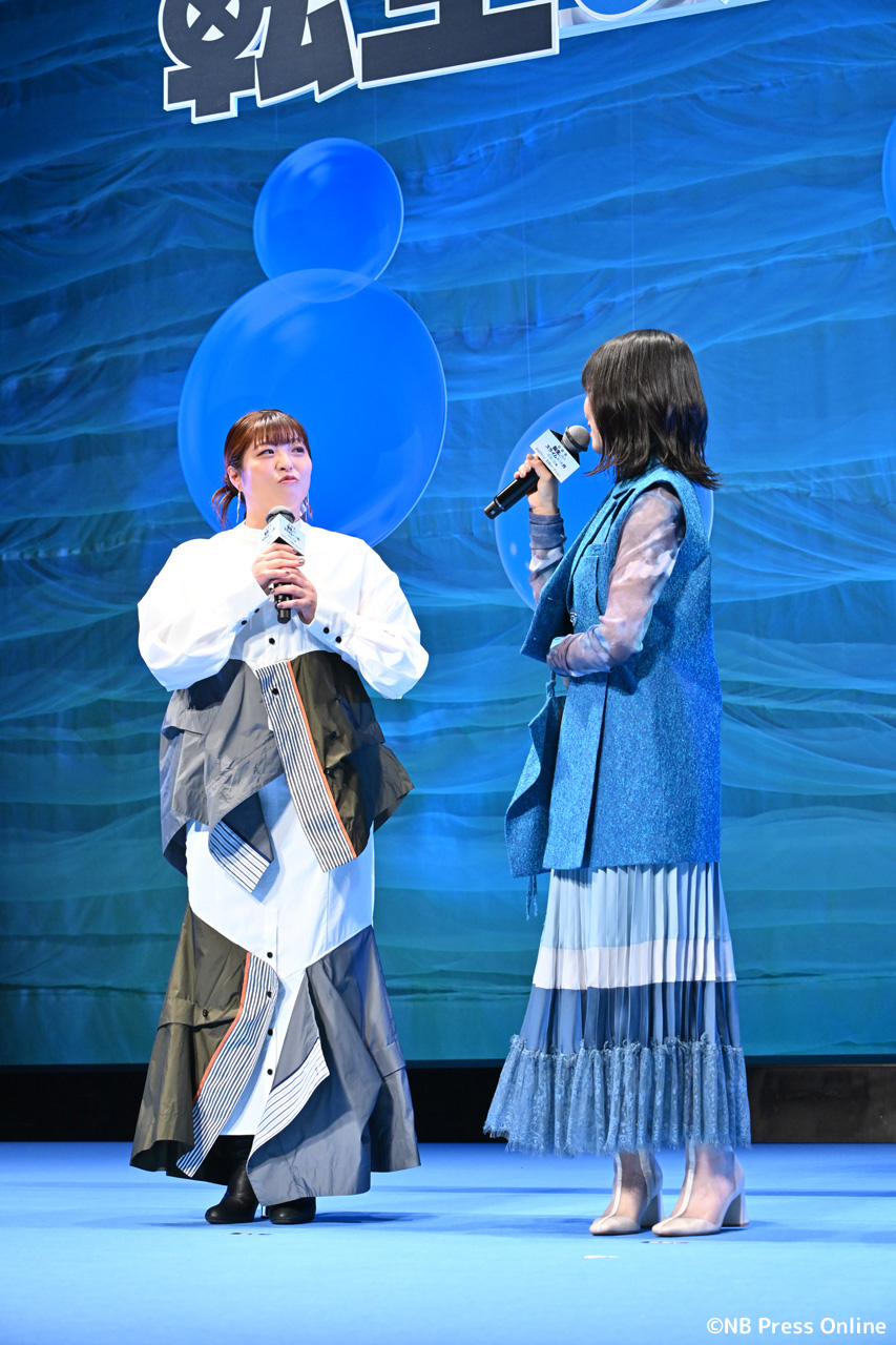私は個人での演技のお仕事自体が初めてで、それが声優のお仕事ということで緊張や不安もありました。でも、先輩の小坂さんと一緒に出演できたことや、ファンやメンバーからお祝いの言葉をもらって心が温まりました。今日こうして皆様にお会いできて、幸せな気持ちでいっぱいです。