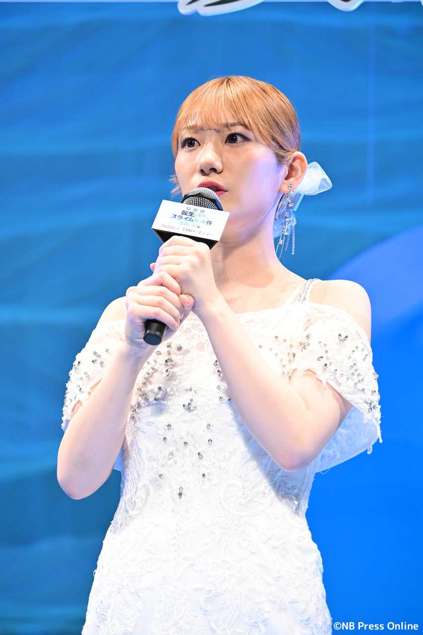 私も今回、この劇場版のゲストキャラということで、初めて転スラに関わらせていただいたんですけれども、さっき、泊ちゃんも言ってましたけども、声のお芝居もそうですし、絵もそうだし、音楽もそうだし、そして劇場でっていう特別な場所で見れるっていうのも、全部が相まって、とっても素敵な作品になってます。