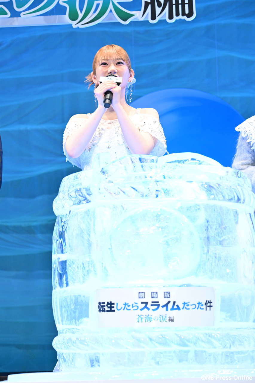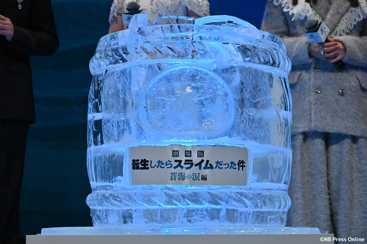 映画の完成を祝して行われたのは、登壇者たちによる鏡開き。“蒼海の涙”を表現した大きな氷の樽が舞台上に登場。樽にはリムルの顔も描かれており、一同は「どうやって作ったの!?」とビックリ。登壇者と会場のファンにとって嬉しいサプライズとなった。