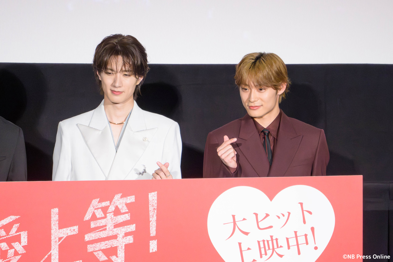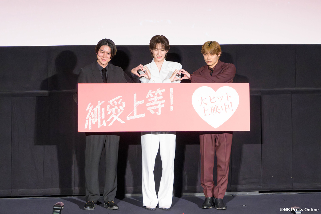 2026年2月14日、新宿ピカデリーにて、映画『純愛上等!』公開記念舞台挨拶が行われ、山中柔太朗(M!LK)、髙松アロハ(超特急)、八重樫風雅監督が登壇。さらに、映画の公開を祝して、名曲「LOVE 2000」を歌う本家、アーティストのhitomiがサプライズで登場した。(動画&フォト)