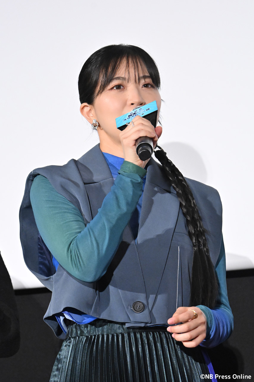 海底の国「カイエン国」の巫女、ユラ役の大西沙織です。皆様、映画は楽しかったですか?(会場拍手) よかった!映画館だと静かになりがちですが、今日は楽しかった気持ちをぜひ共有していきましょう。よろしくお願いします。
