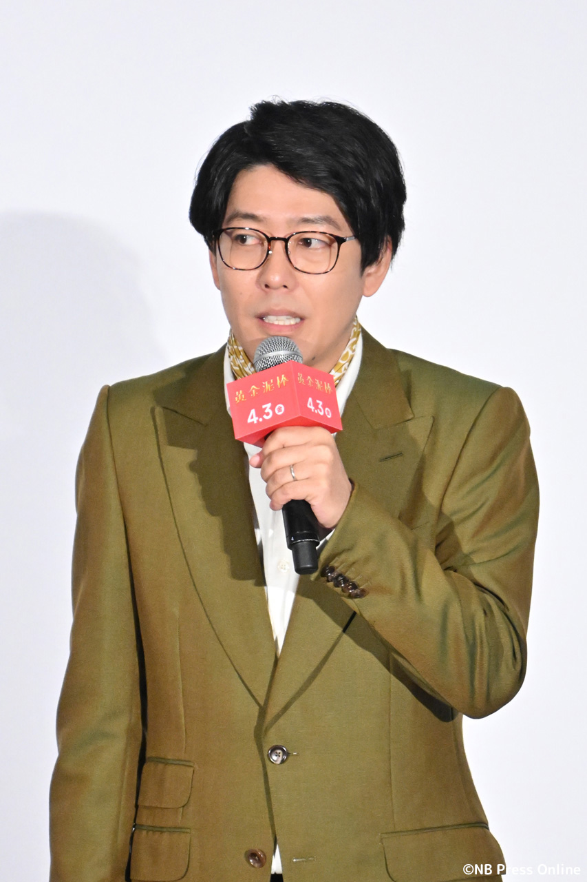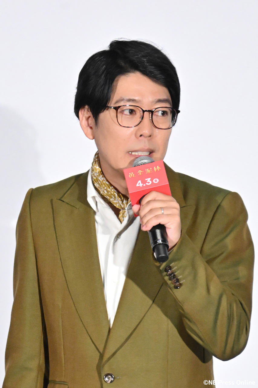 トークの終盤、劇中で実際に使用された総額2億円を超える「純金のたこ焼き器」がステージに登場。セキュリティが厳重に見守る中、田中と森崎が実際に手にした。