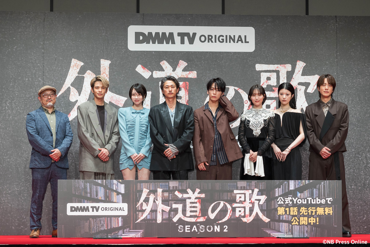 2026年4月6日、渋谷ヒカリエホールAにて、DMM TVオリジナルドラマ「外道の歌 SEASON2」配信記念イベントが行われ、窪塚洋介、亀梨和也、南沙良、森崎ウィン、馬場ふみか、溝端淳平、あの、白石晃士監督が登壇。(動画&フォト)