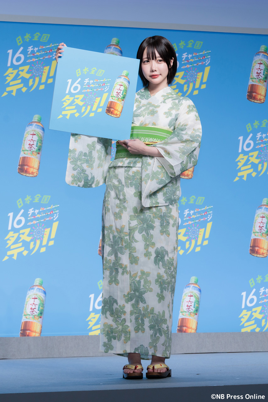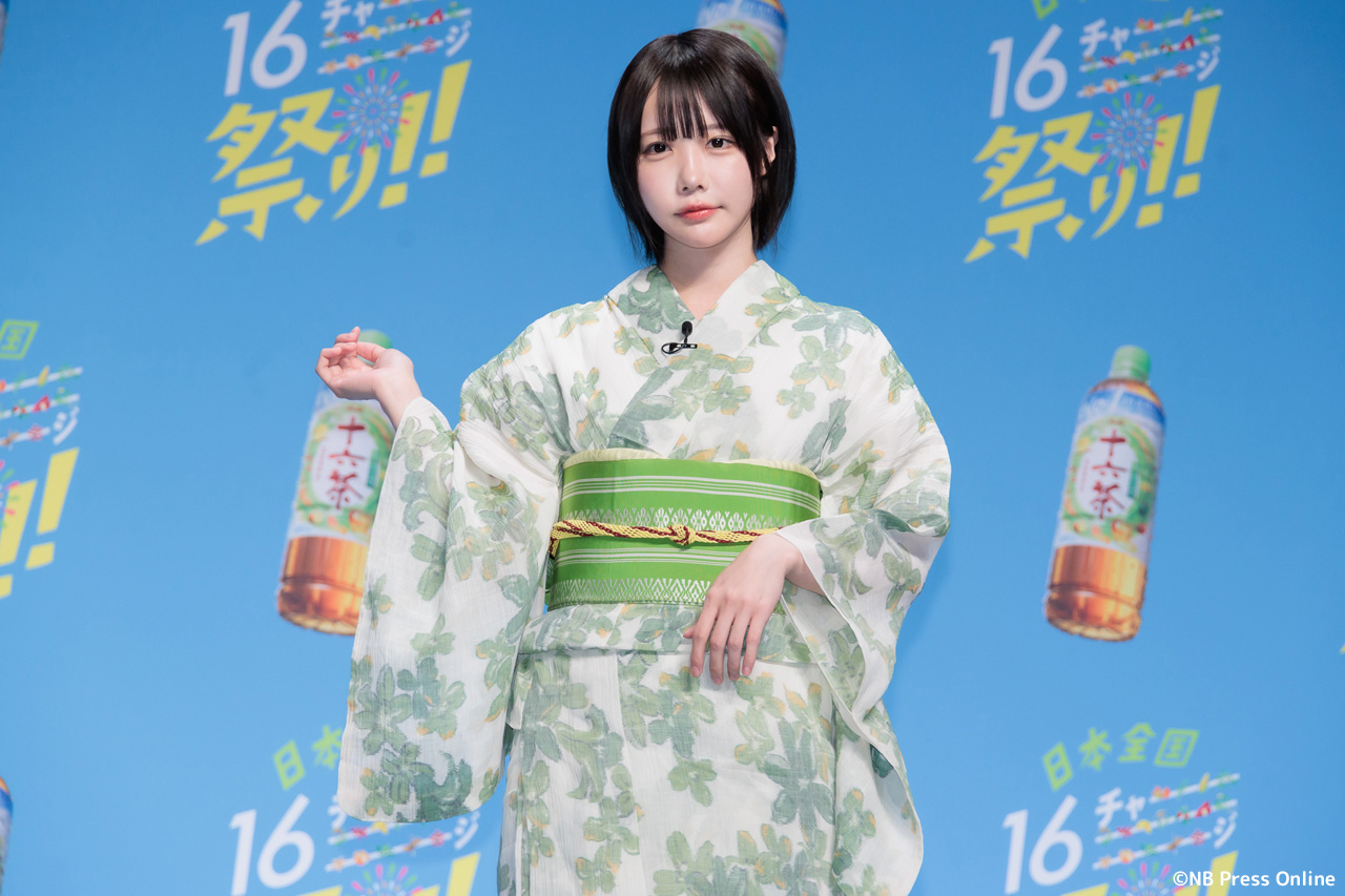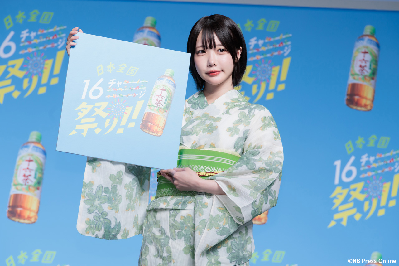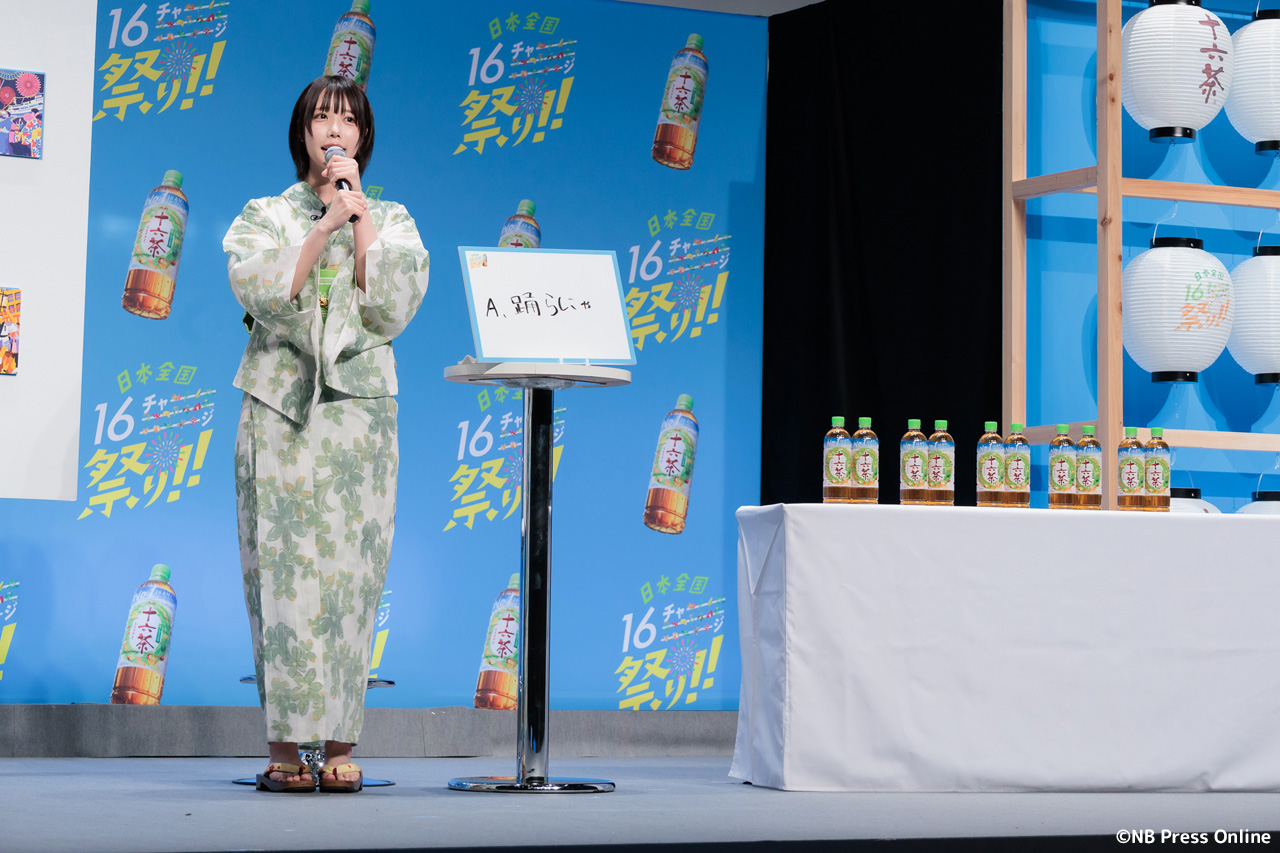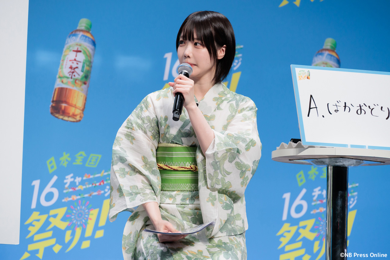 珍答も!あのちゃん、「十六茶」カラーの浴衣姿で全国お祭りクイズに挑戦!「日本全国16チャーーージ祭り!!」プレス発表会