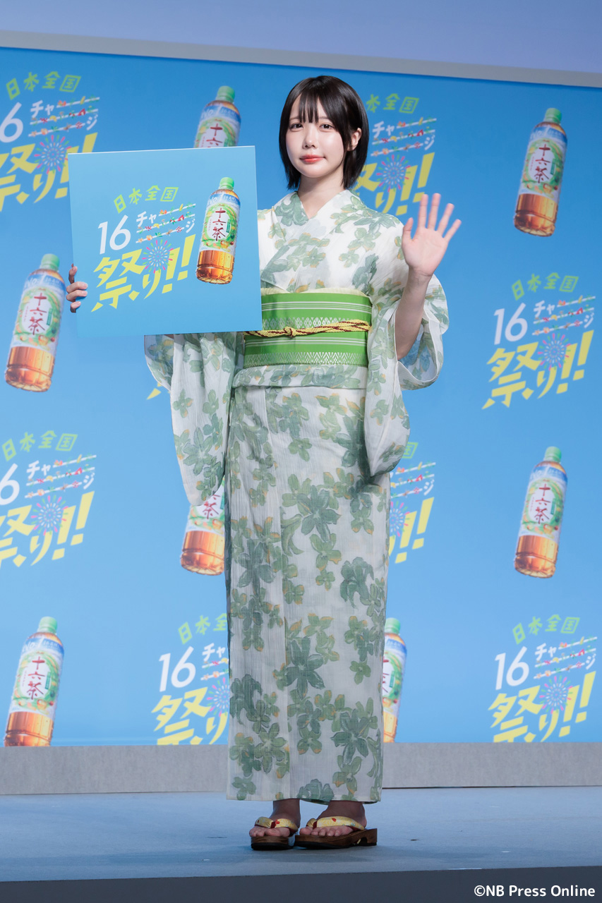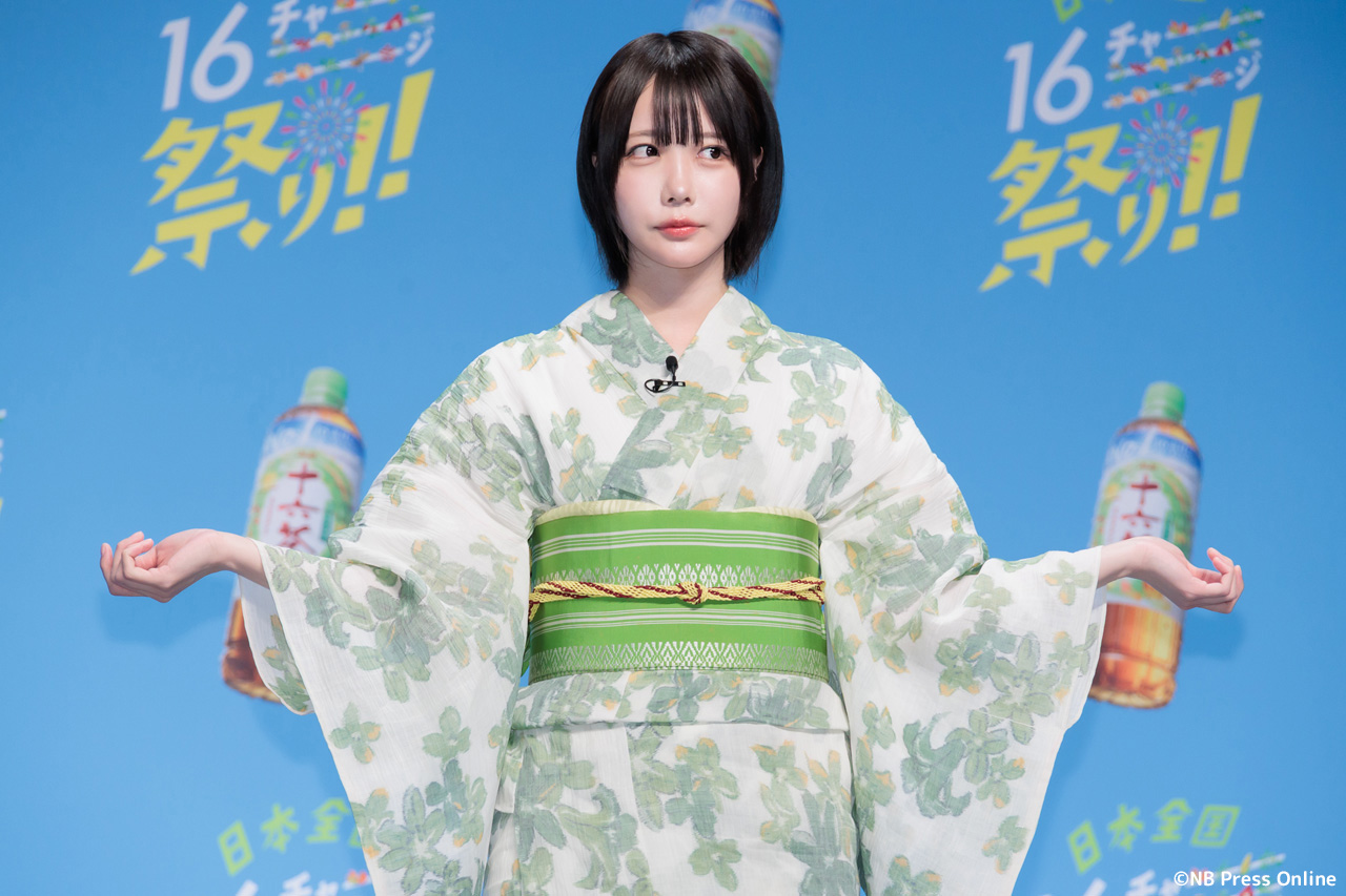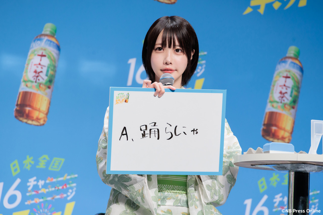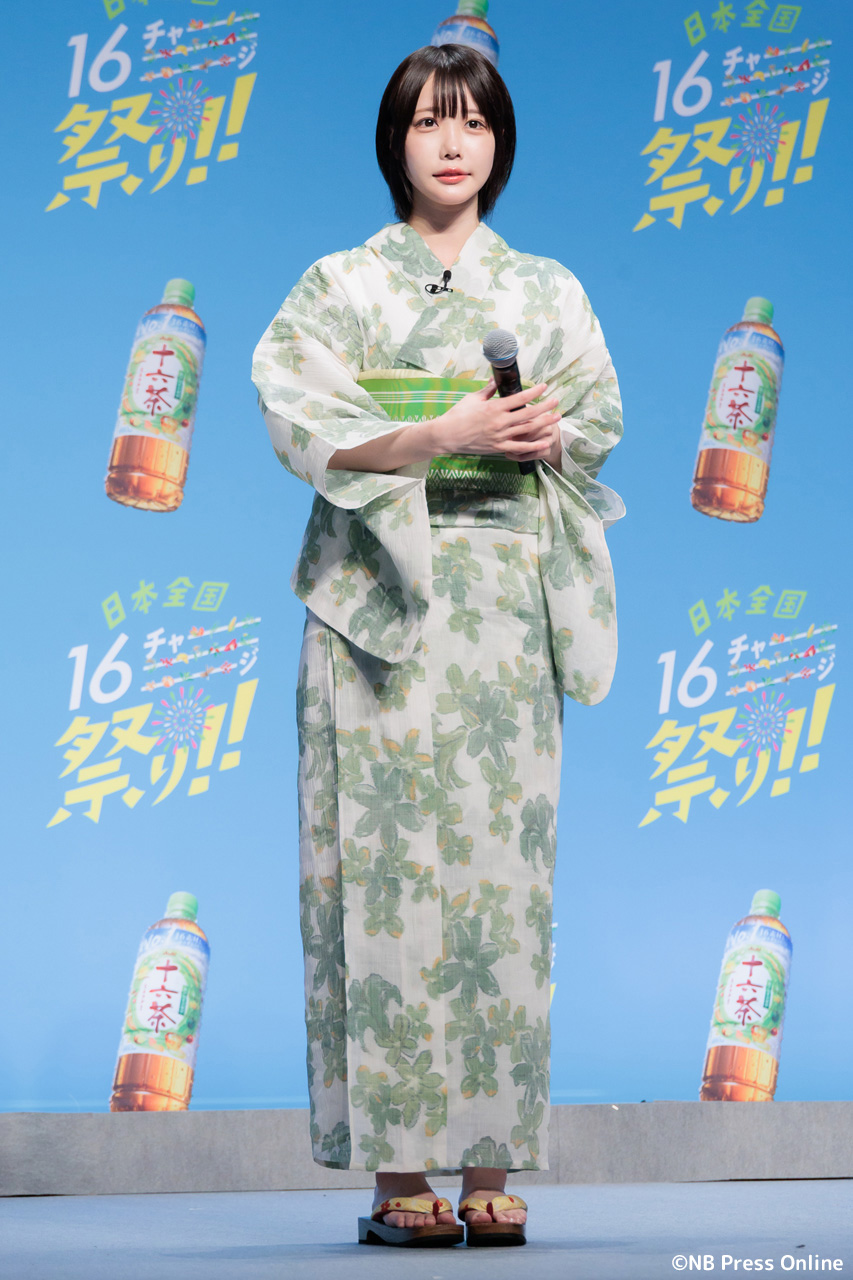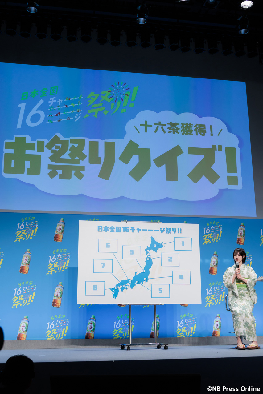 珍答も!あのちゃん、「十六茶」カラーの浴衣姿で全国お祭りクイズに挑戦!「日本全国16チャーーージ祭り!!」プレス発表会