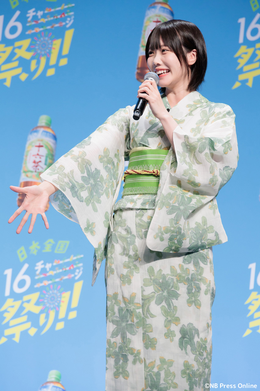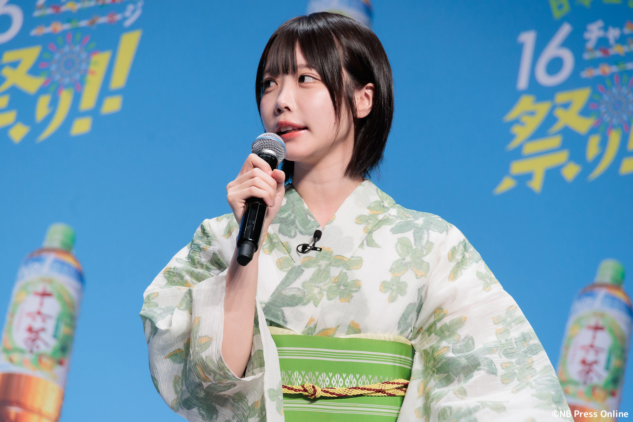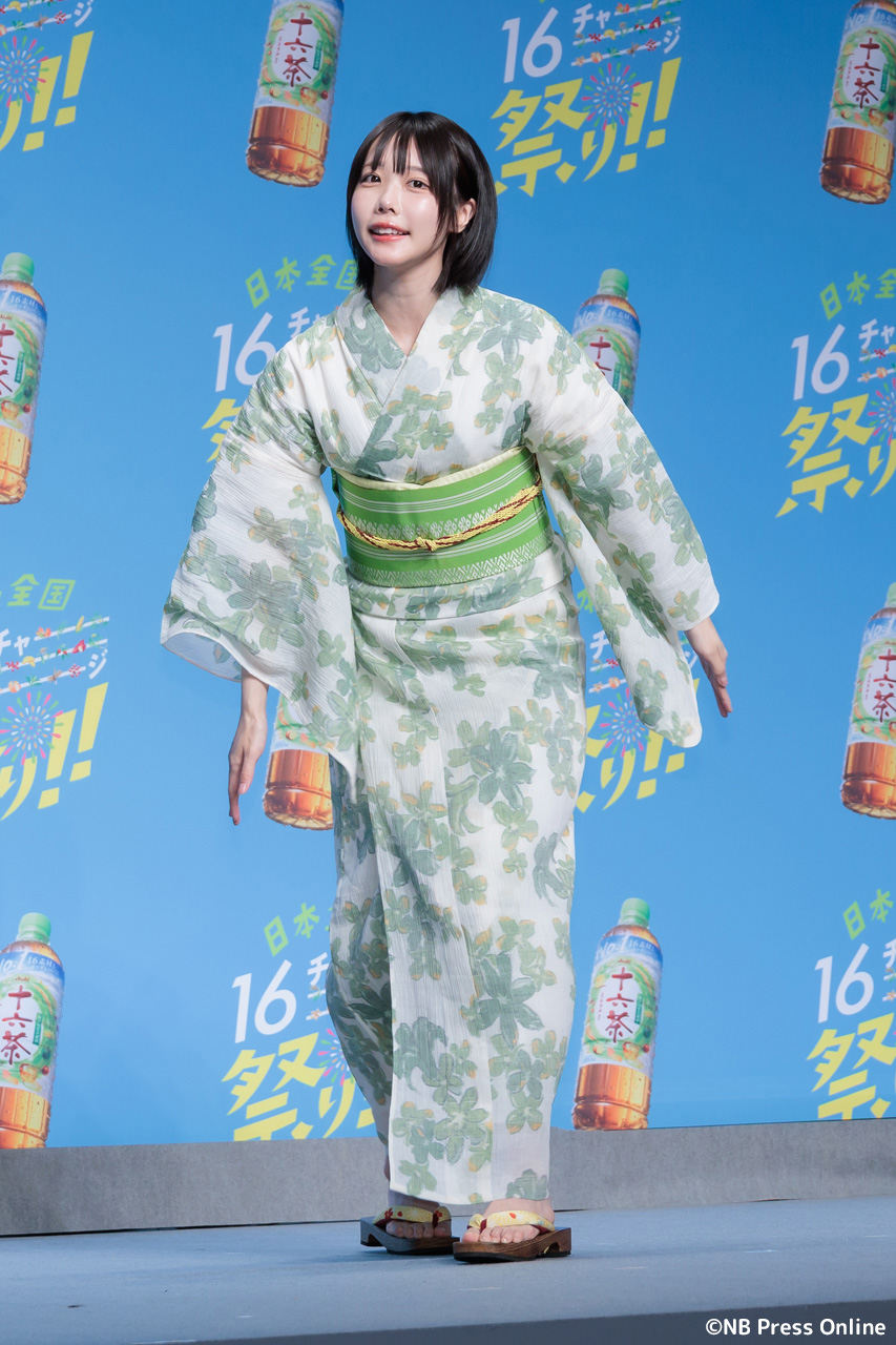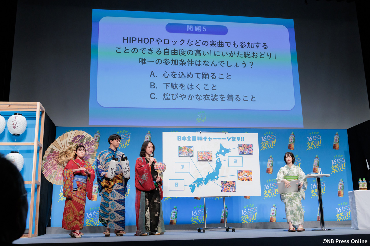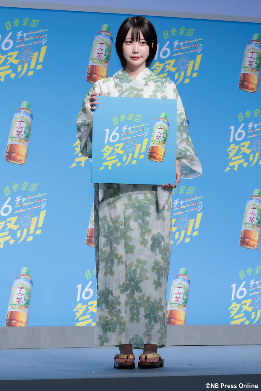 珍答も!あのちゃん、「十六茶」カラーの浴衣姿で全国お祭りクイズに挑戦!「日本全国16チャーーージ祭り!!」プレス発表会