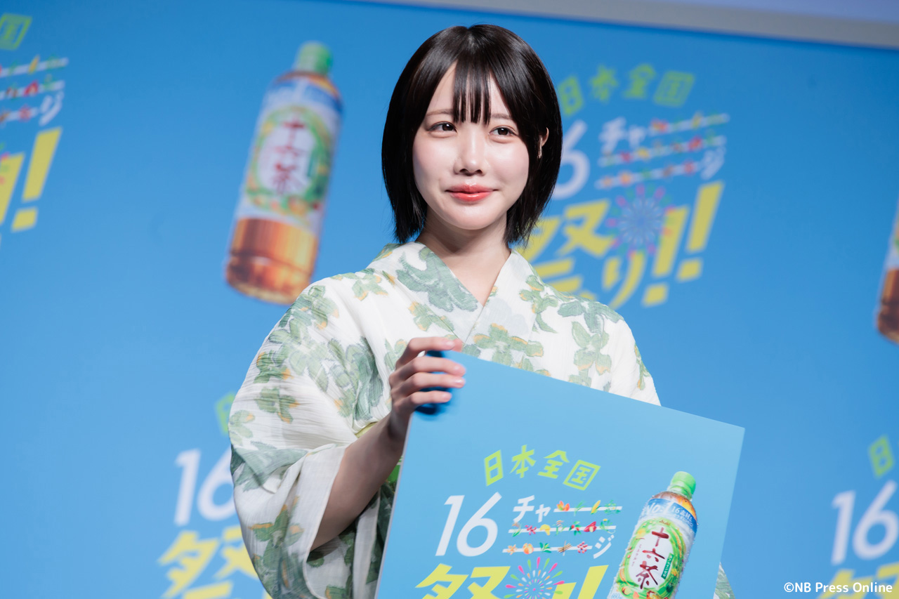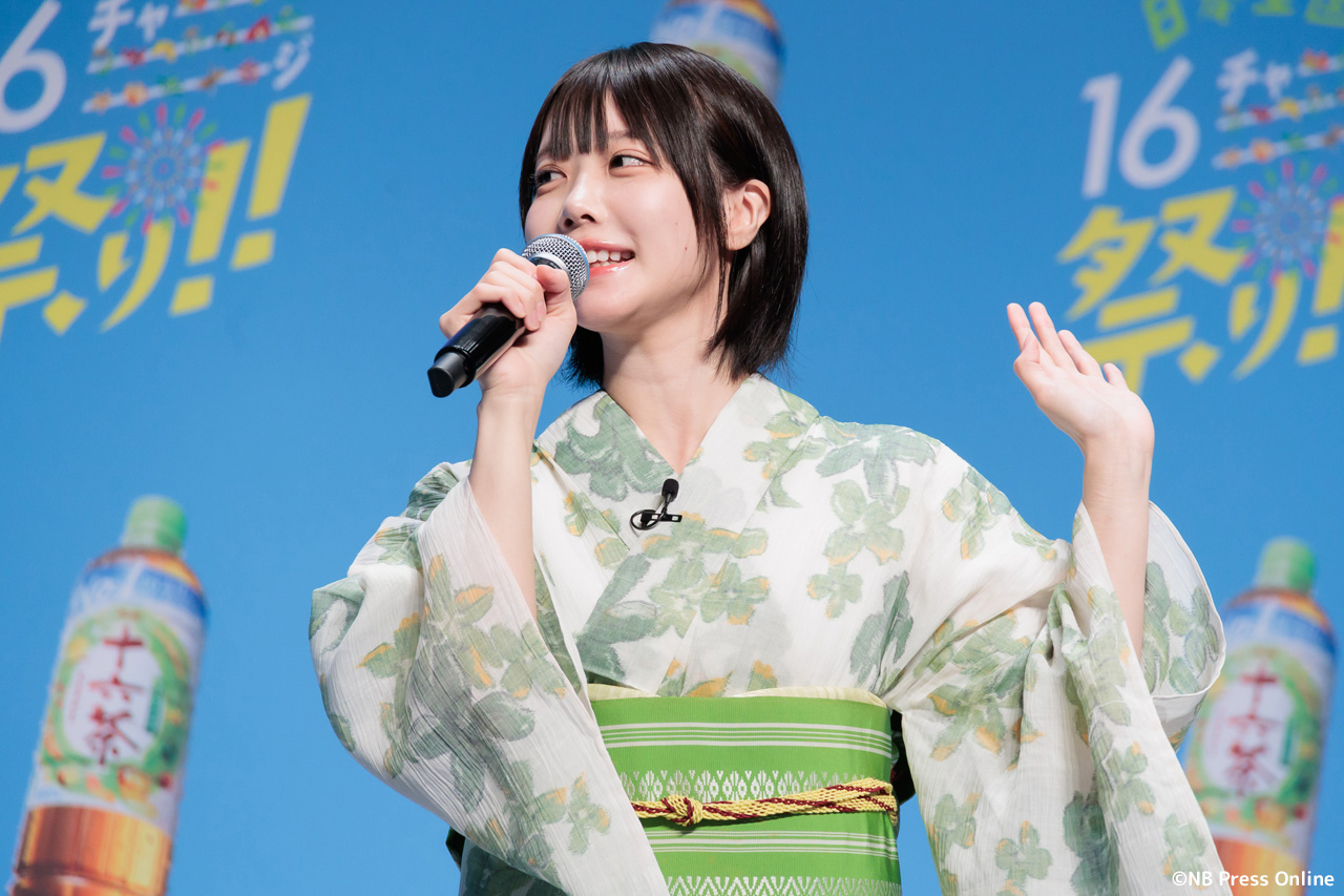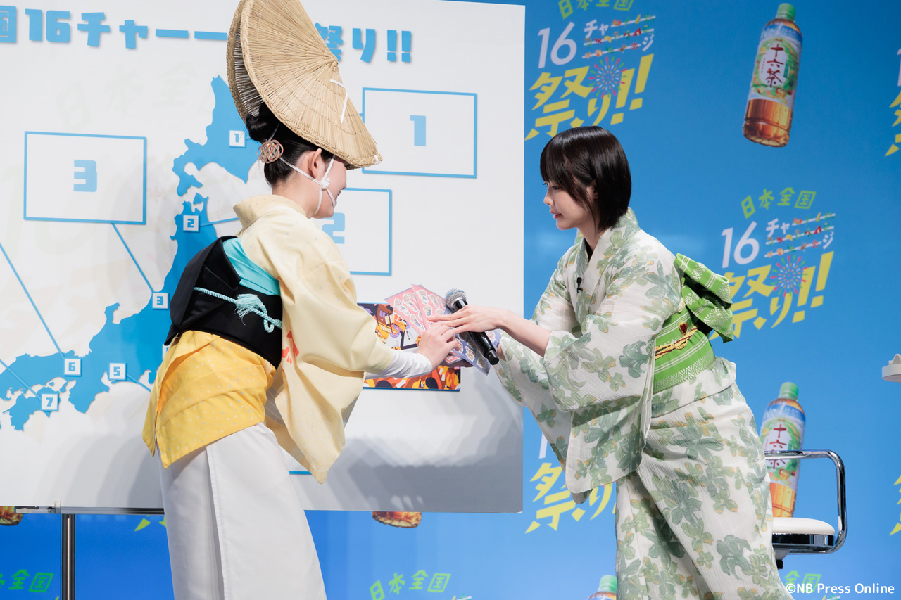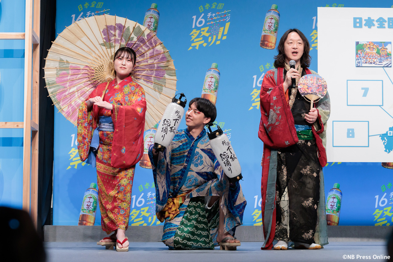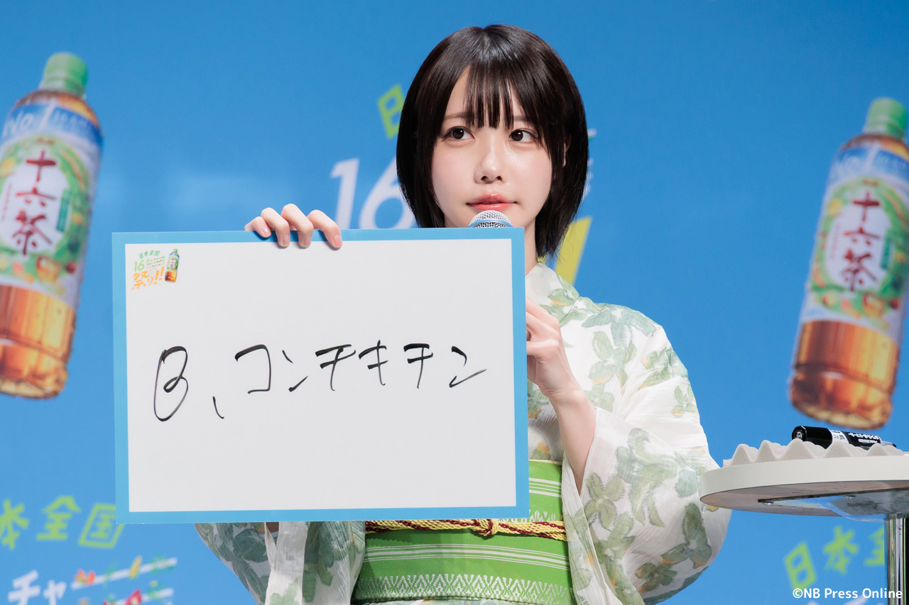 珍答も!あのちゃん、「十六茶」カラーの浴衣姿で全国お祭りクイズに挑戦!「日本全国16チャーーージ祭り!!」プレス発表会