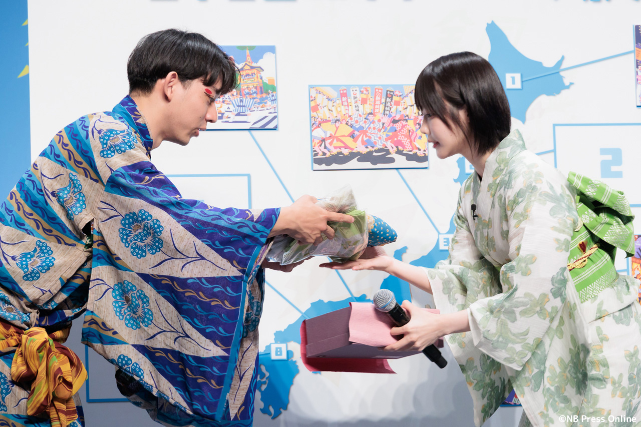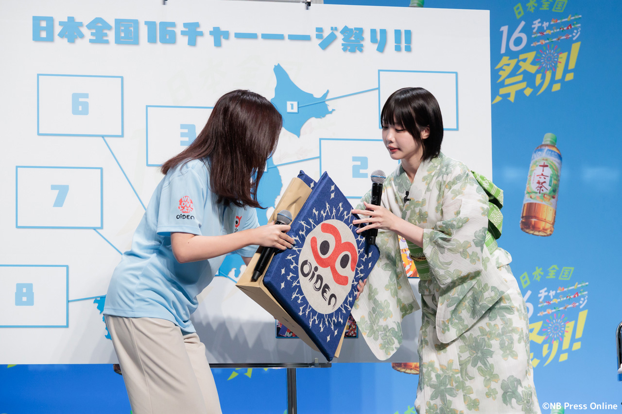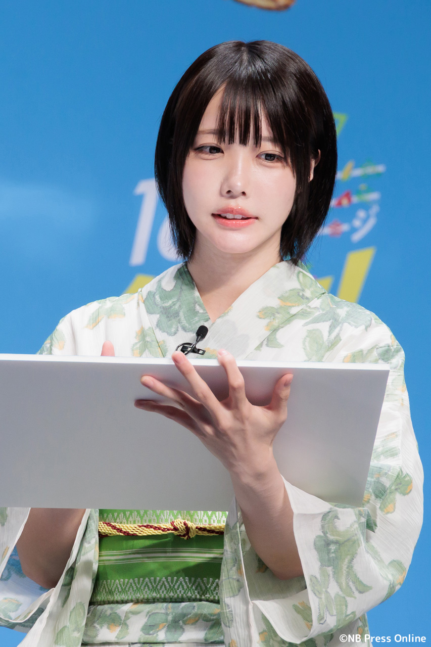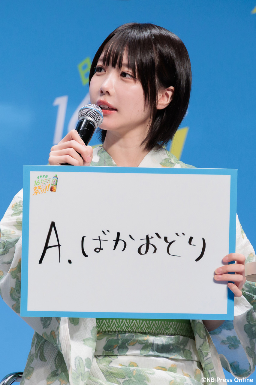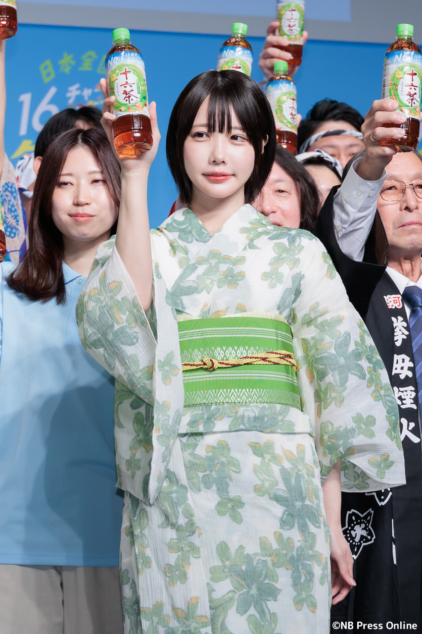 珍答も!あのちゃん、「十六茶」カラーの浴衣姿で全国お祭りクイズに挑戦!「日本全国16チャーーージ祭り!!」プレス発表会