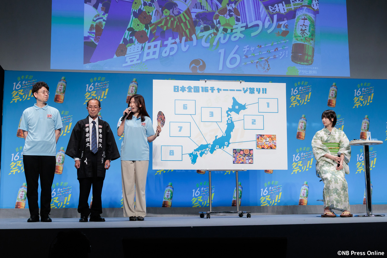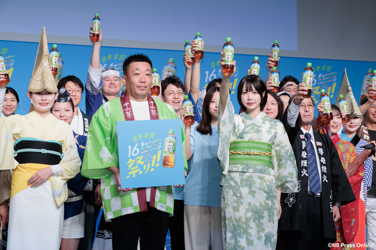2026年4月7日、神田スクエアホール(東京都千代田区)にて、「日本全国16チャーーージ祭り!!。プレス発表会が行われ、2025年より『アサヒ 十六茶』のCM楽曲を歌唱するあのが爽やかな「十六茶」カラーの浴衣姿で登壇。全8問の全国お祭りクイズに挑戦した。(動画&フォト)