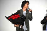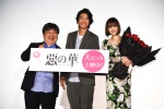 10月10日、TOHOシネマズ日比谷で、映画『惡の華』の最後となる舞台挨拶が行われ、主演の伊藤健太郎、玉城ティナ、井口昇監督が登壇。そして、10/8に誕生日を迎えた玉城ティナを伊藤健太郎が真紅バラの花束でお祝いをするサプライズもあった。(フォトギャラリー)