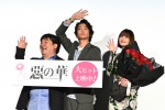 舞台挨拶前、MCを務める映画パーソナリティの伊藤さとりが客席に向かって鑑賞回数を尋ねると、ほぼ全員が2回以上、最高で14回という声が上がったほか、富山県など地方から駆けつけた熱烈な『惡の華』のファンもおり、とても温かい雰囲気の舞台挨拶となった。